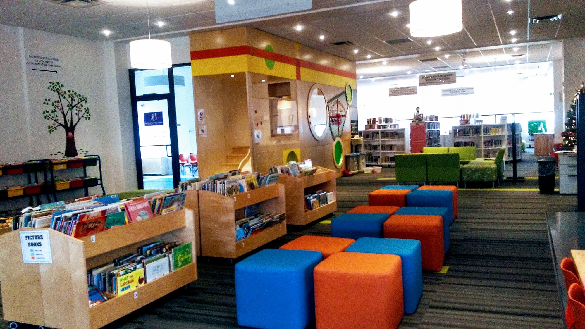 A beautiful children's section with thoughtful design elements to make it easy to bring kids here.