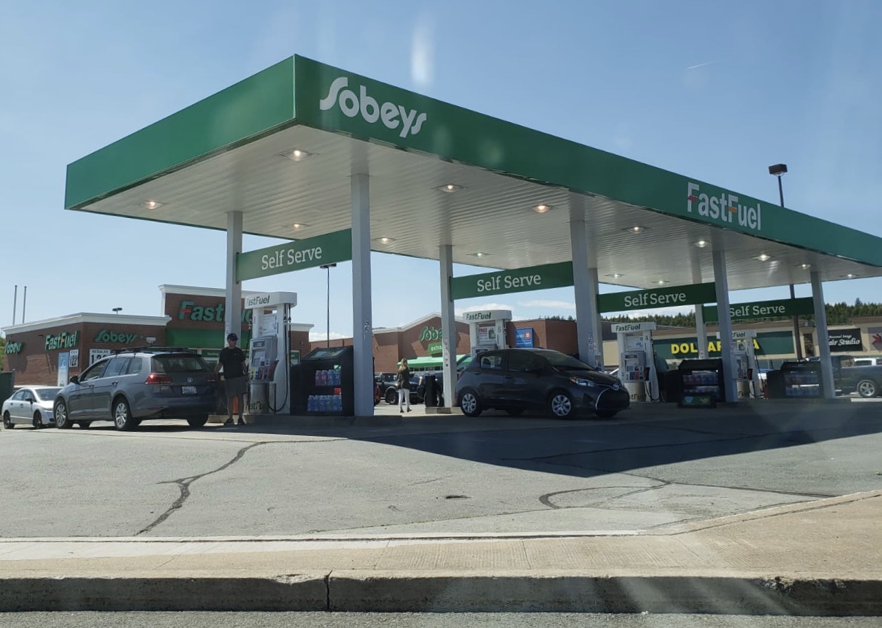Easy access off highway. Located in parking lot of the Sobeys shopping plaza, close to McDonalds, Subway and various other local restaurants. Free coffee & hot drinks with $25 or more gas purchase. Including milk hot chocolate, great for kids. Gas purchase also gets 3.5c/litre cash coupons for Sobeys. TD ATM located inside.