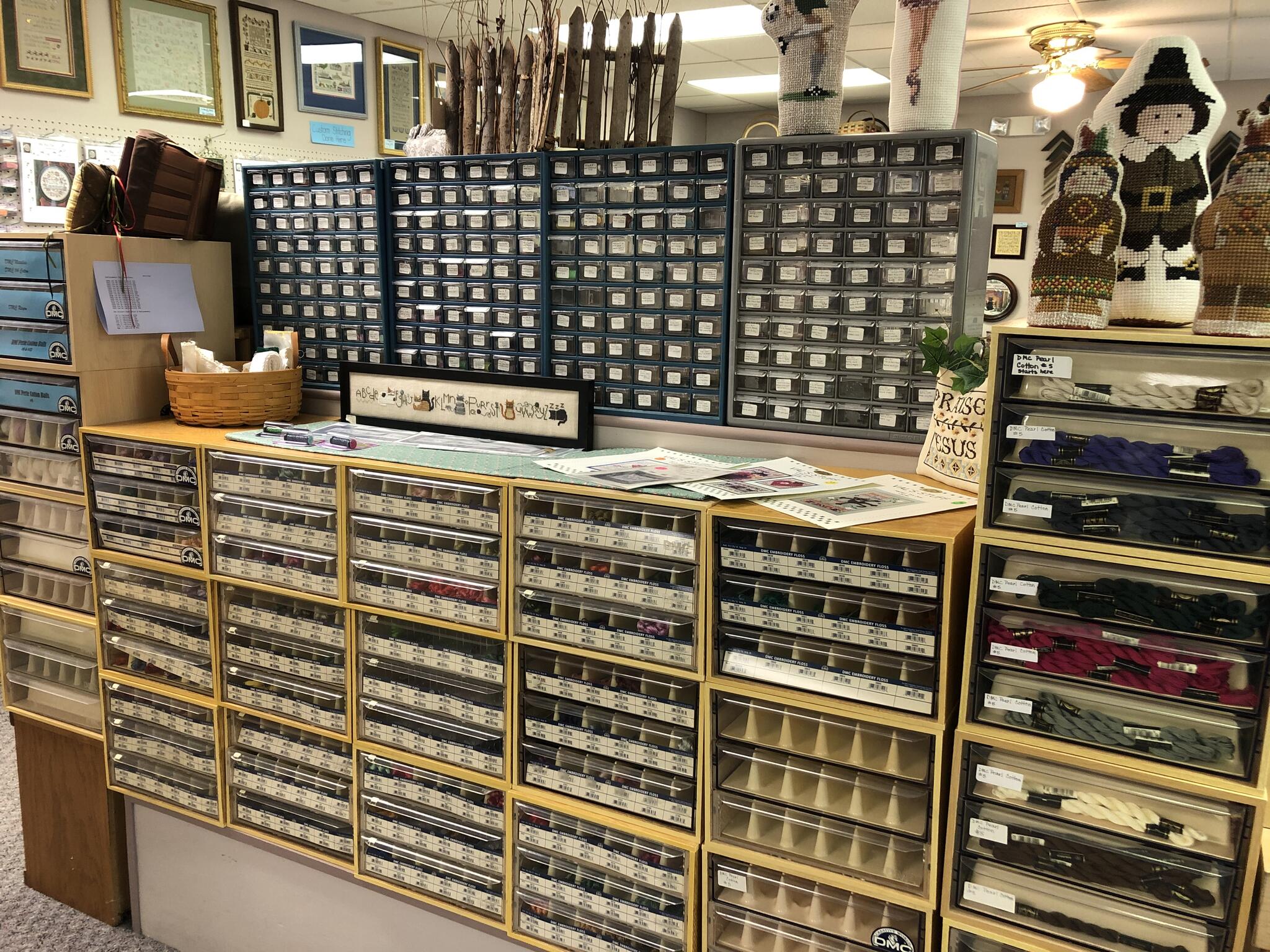 We are a local business located in Akron, Ohio that specializes in Cross Stitch and Needlearts patterns and supplies. We carry Weeks Dye Works, Gentle Arts Threads, Classic Colorworks, DMC, Anchor, Pearl Cottons, Silks, Wools, Blends and a variety of specialty threads from Kreinik and RG. We carry not only threads but patterns from designers like Lizzie & Kate, the Cricket Collection, Praiseworthy Stitches, Bent Creek, the Trilogy and many more. Whether it’s selecting a pattern, choosing fabric or matching thread colors our staff of experienced stitchers are happy to help. Can’t find it in our store? We will do our best to accomodate any special orders. If there is something specific you are looking for, don’t hesitate to let us know!