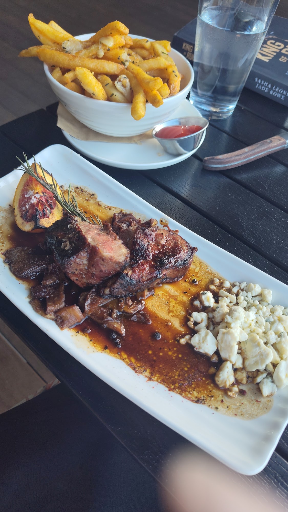 The food was great..we had outside reservations it started to rain but we still enjoyed ourselves. The lady sever seem like she would rather be anywhere but there but our male sever was great he was so friendly. I had the duck and mash with green beans.