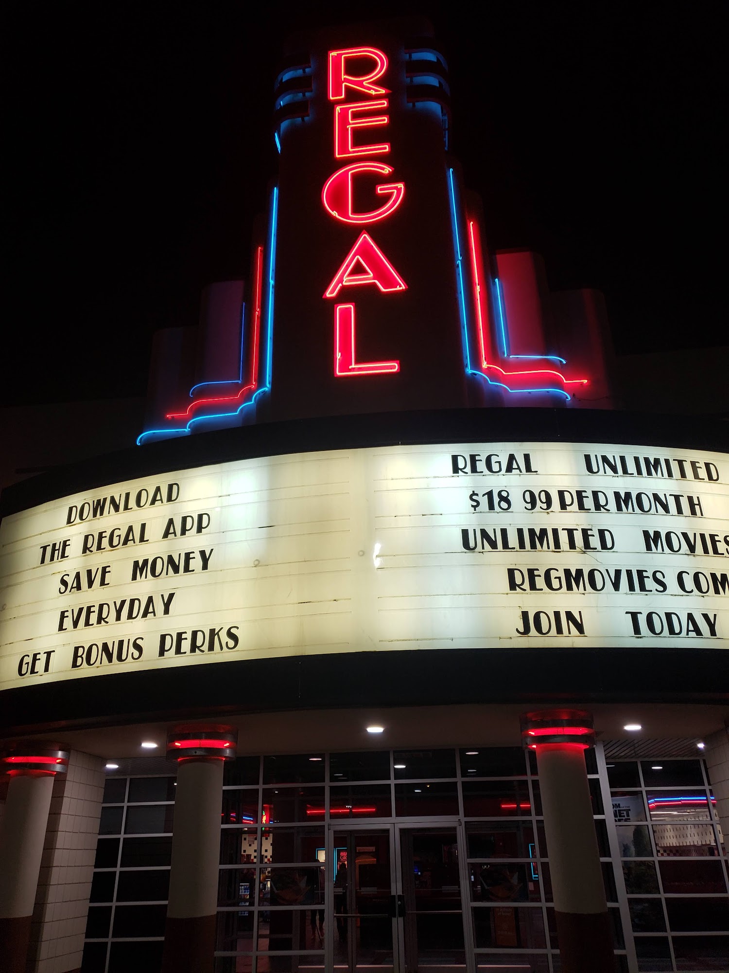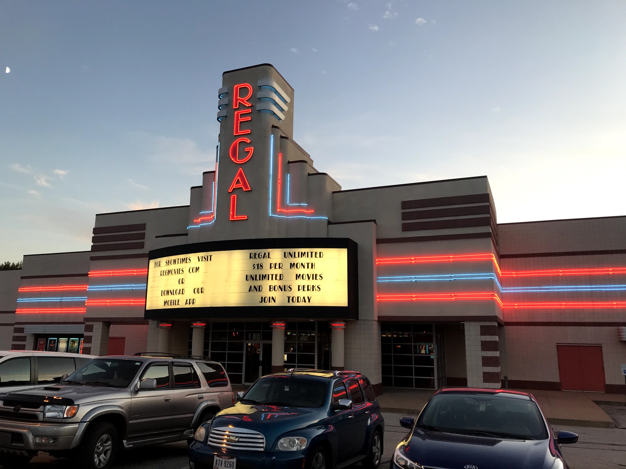 Regal Independence is a charming and intimate movie theater that offers a nostalgic experience. The employees are polite, welcoming, and remember regular customers, creating a great energy. While the theater chairs may not be the most comfortable, it helps prevent falling asleep during the movie. The pricing, particularly for water, may be a slight drawback, but the overall experience is enjoyable, especially when shared with loved ones. The theater's simple and unpretentious vibe makes it a pleasant destination for a quiet movie night.