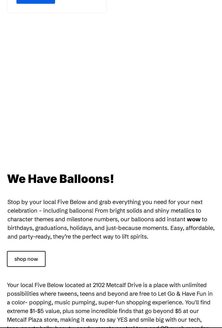 Five Below is a leading high-growth value retailer offering trend-right, high-quality products loved by tweens, teens and beyond. With most items priced between $1 and $5 and some extreme value items priced beyond $5, Five Below makes it easy to say YES! to the newest, coolest stuff across eight awesome Five Below worlds: Style, Room, Sports, Tech, Create, Party, Candy, and New & Now. Customers can enjoy an amazing experience filled with unlimited possibilities in a clean and friendly environment. The staff are known for their helpfulness, whether it's assisting with bagging items or navigating the well-stocked stores. Five Below has over 1,800 stores in 44 states, providing additional shopping options for communities.