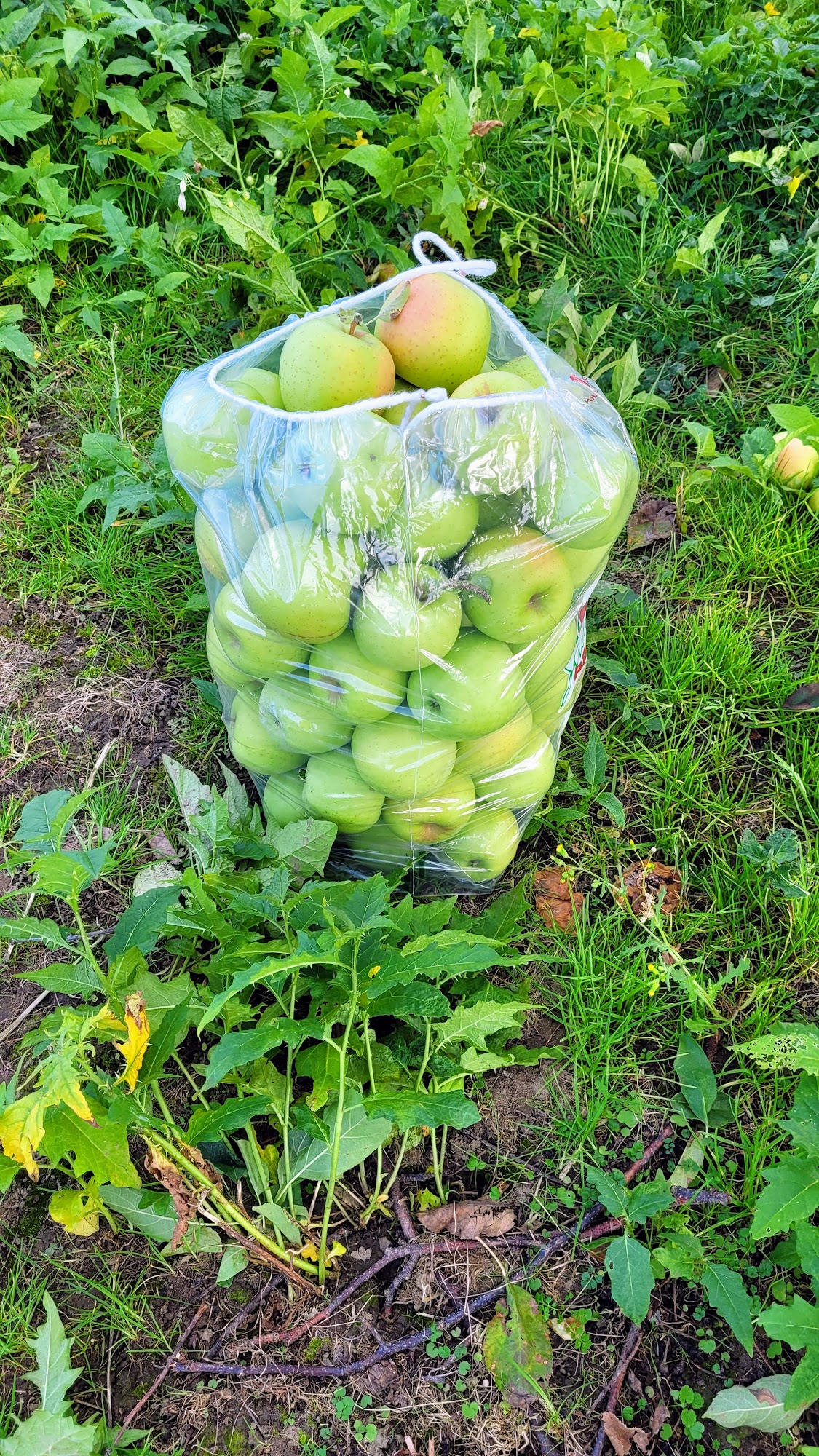 The gentleman held my McIntosh apples for me. It was very nice of him to do it. Apples look good.