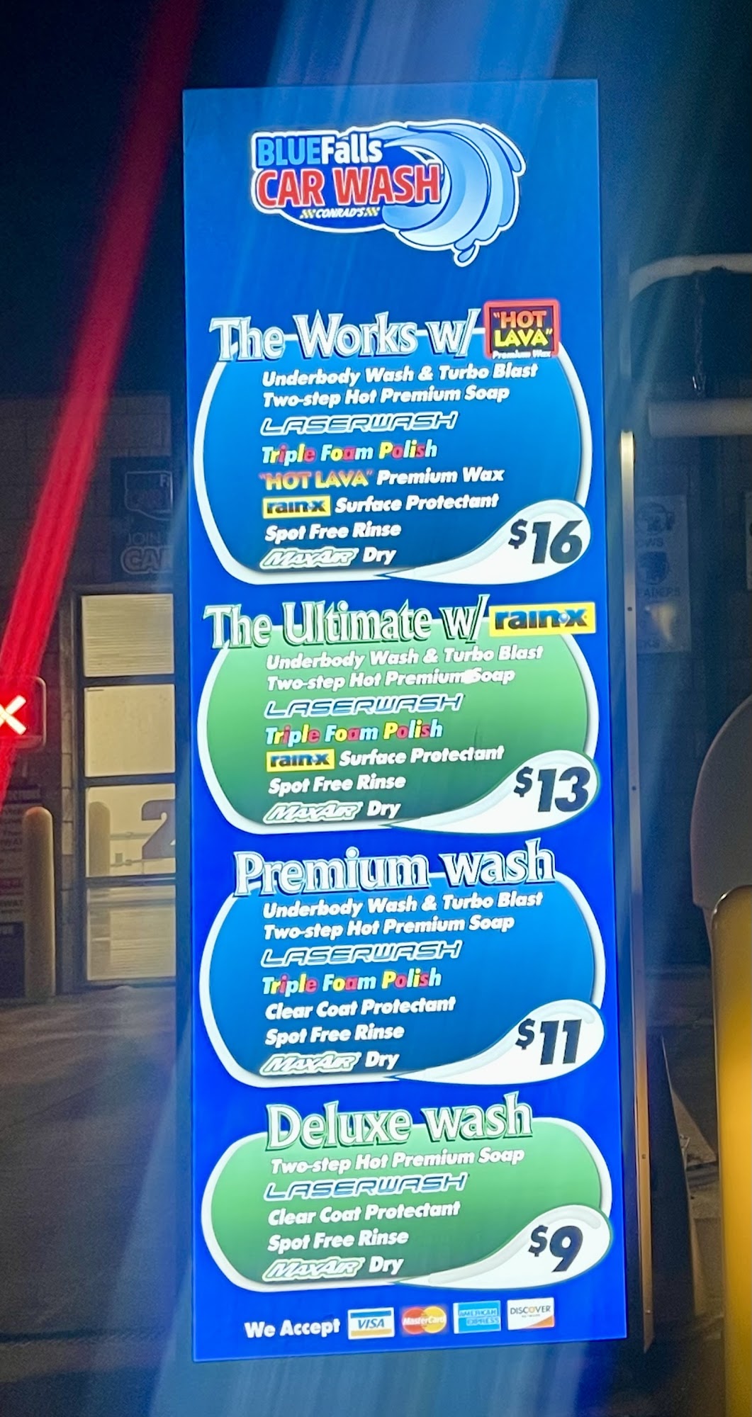 Blue Falls Touch-Free Laser Wash provides a superior car-wash experience. Unlike other car washes, the touch-free laser wash technology ensures 360-degree coverage and tackles hard-to-remove bug debris. It washes AND dries your car faster so you can confidently drive your vehicle, knowing it's clean and protected.