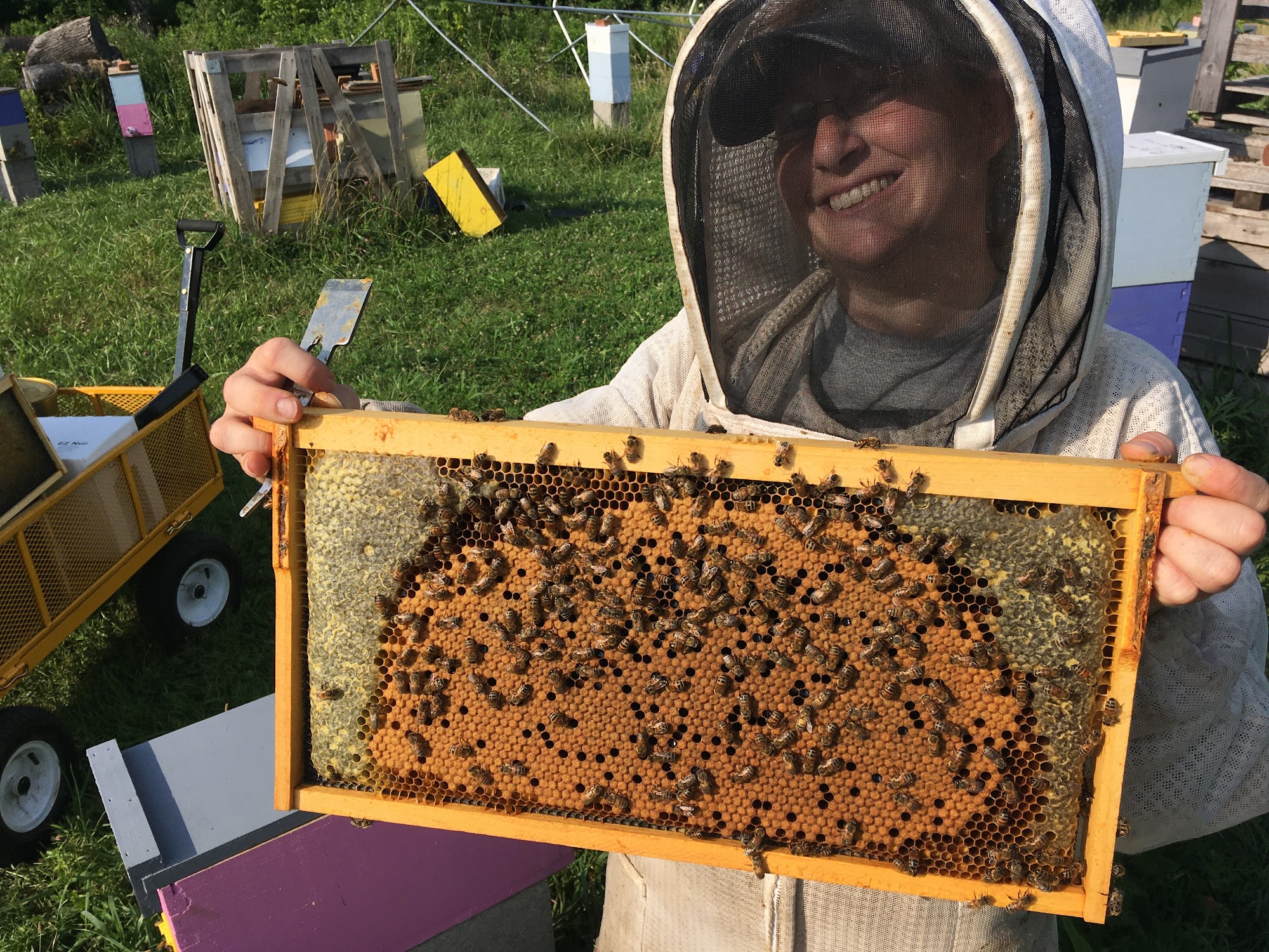 HappBee Acres Bee Supply is a grassroots business owned and operated by a husband and wife team who are passionate about bees. The business focuses on providing equipment, supplies, and education to other beekeepers to help them be successful. HappBee Acres ships bee supplies worldwide, helping to rebuild the beekeeping community and bee population. The business owns and maintains around 200 bee colonies, producing approximately 175 "nucs" (small 5-frame bee colonies) in the spring. Their bees in southwest Ohio produce several tons of raw honey each year. HappBee Acres also offers mentoring, free monthly educational classes, hive sponsorships, public awareness programs, presentations at local clubs and events, and pollination services to local farmers and orchards. Customers have praised the excellent craftsmanship and clever, simple design of the business's products, such as the wax melter, which is efficient and easy to clean up. HappBee Acres is known for its friendly and knowledgeable staff, who provide excellent customer service and are committed to helping beekeepers be successful.