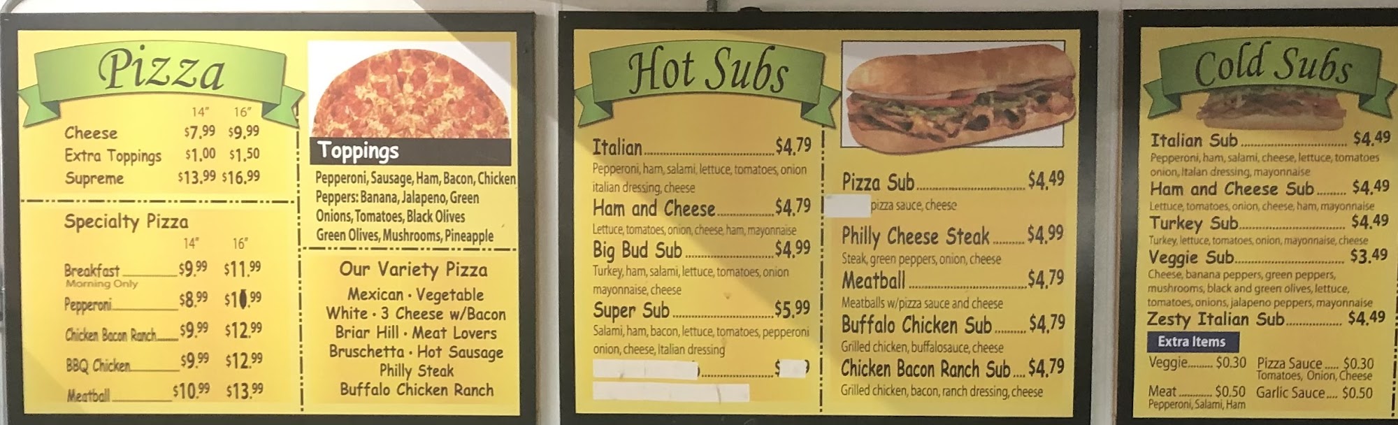 Hot food and also a deli. Lots of wine/beer choices. I like the buffalo chicken pizza or the bbq chicken pizza. They also have chips, candy, pop, energy drinks, lottery, that kind of stuff.