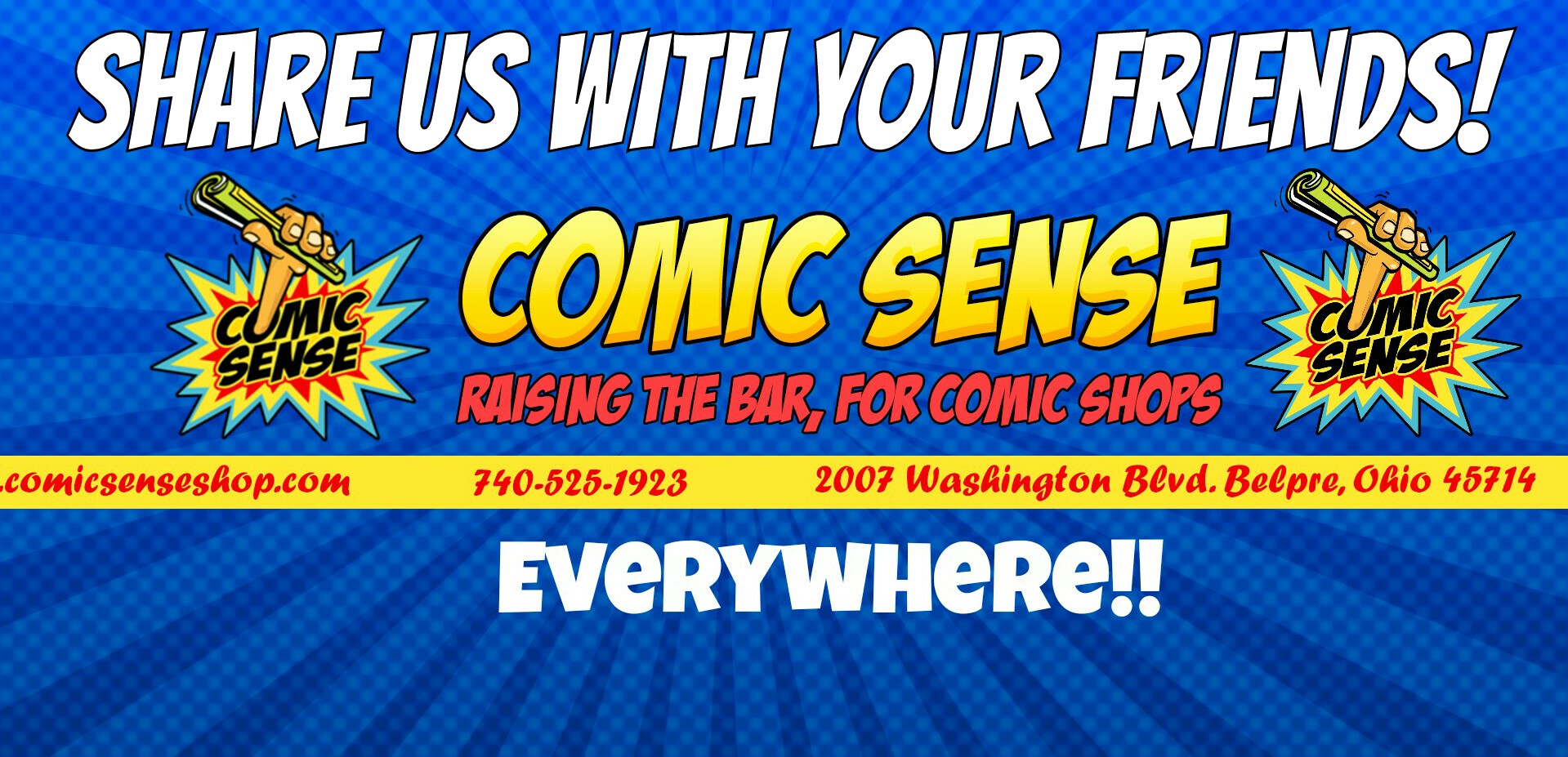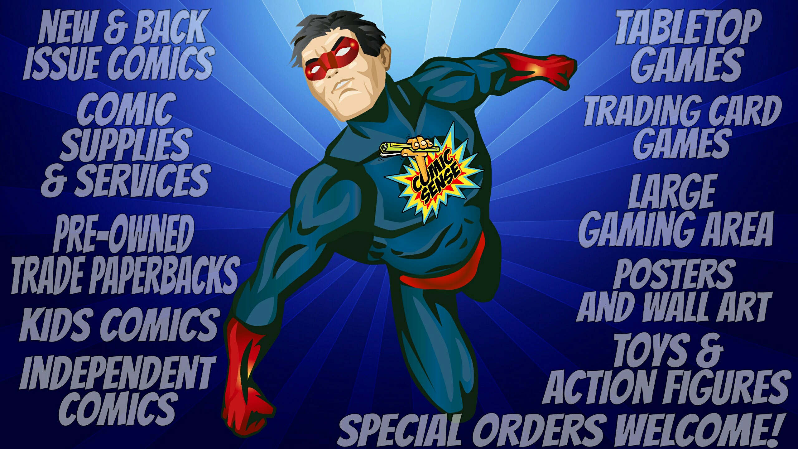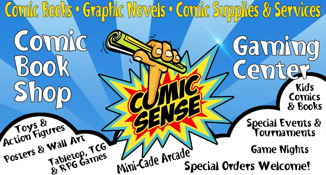 Comic Sense is the areas #1 source for comic books, D&D, gaming, and fun! Check us out and see how comic shop awesomeness is done! We have been serving the MOV for over 5 years now. We are a comic book shop in Belpre, Ohio, right across from the public library. We specialize in friendly, unmatched service, a super clean, family friendly environment, and great comics, games, Manga, magic tricks and more!