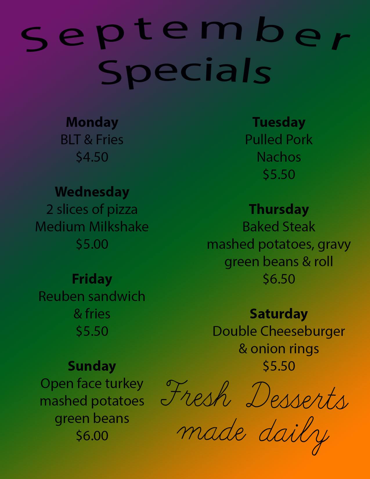 Love eating there it's great home style cooking the pizzas are the best. They have the best ice cream strawberry Sundays anywhere in the USA I've tryed them all.