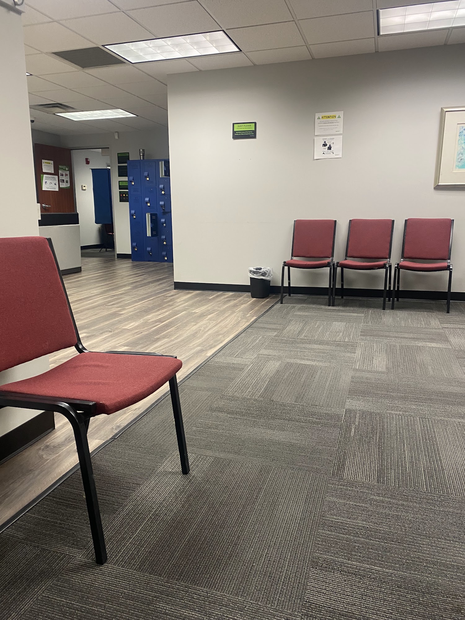 Staff are great and friendly at checkin and checkout! The testing center is a very quiet place for testing ! Spacious eating area allowing you to wait without any problem at all! They had me test 45 minutes earlier than scheduled which was great as far as flexibility is concerned!Recommend