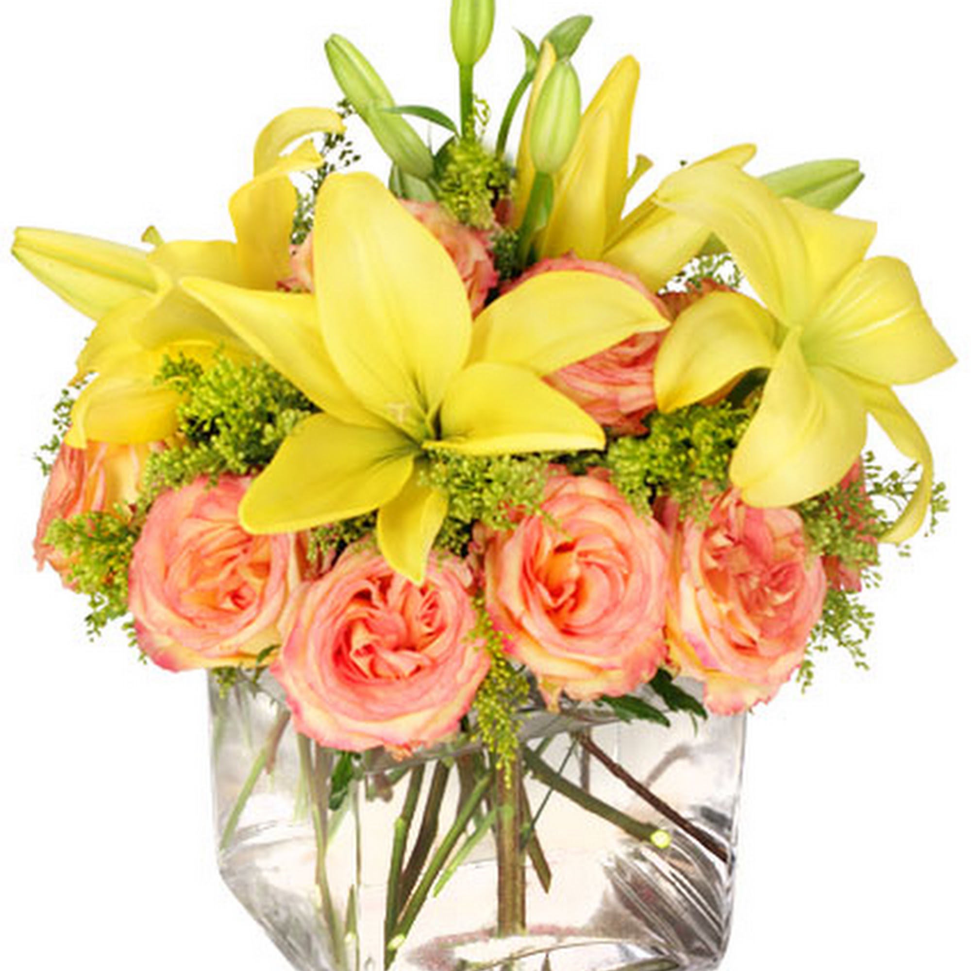 I received this beautiful vase for my birthday. The color and variety of flowers and fill in this arrangement is stunning! I think it's one of the most beautiful arrangements I've ever seen!