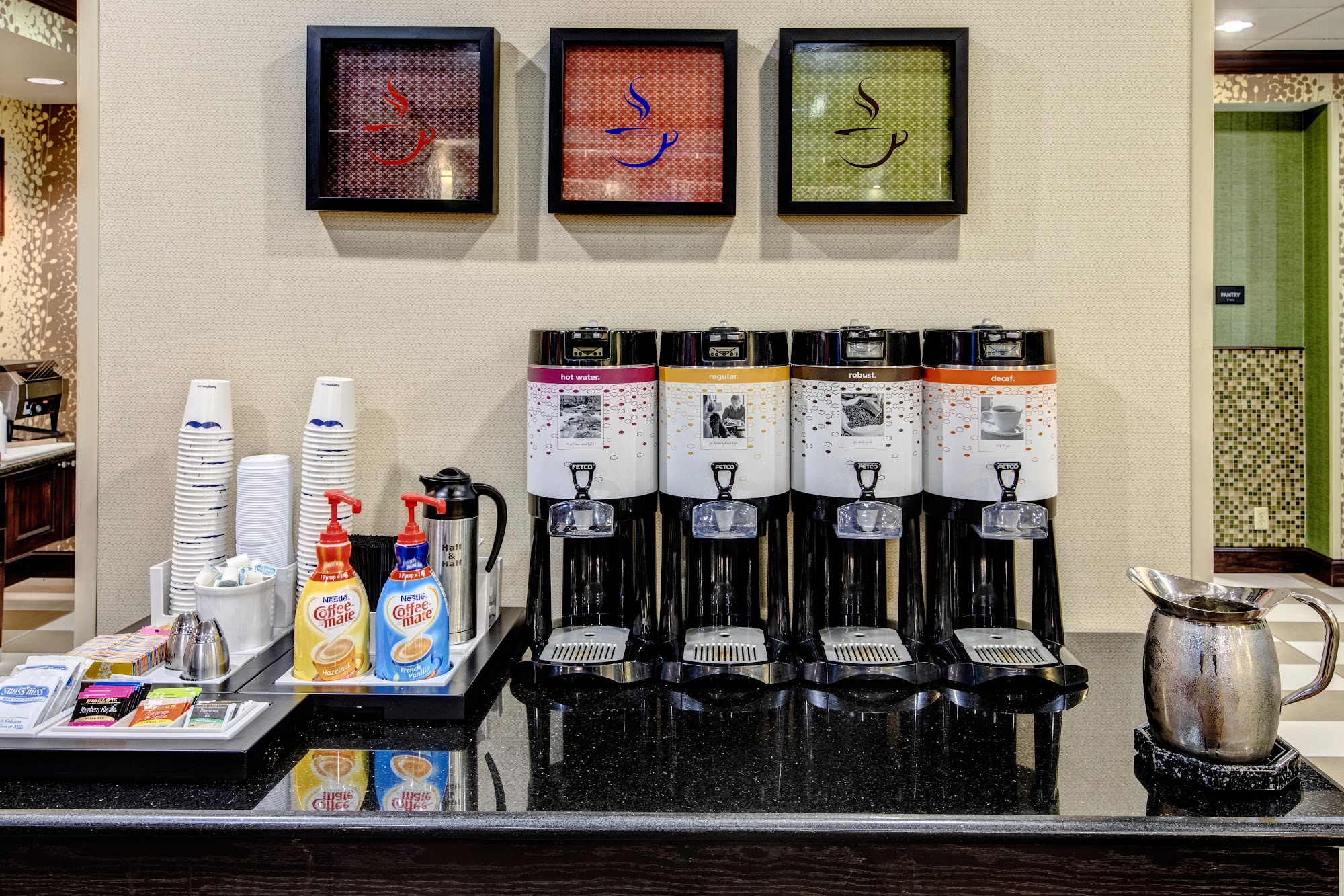 Clean,.fresh rooms, friendly staff and a really good breakfast with lots of options. Convenient location near Highway, good restaurants and other services.