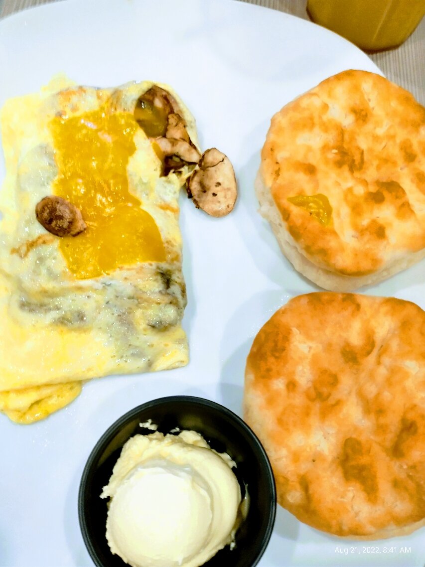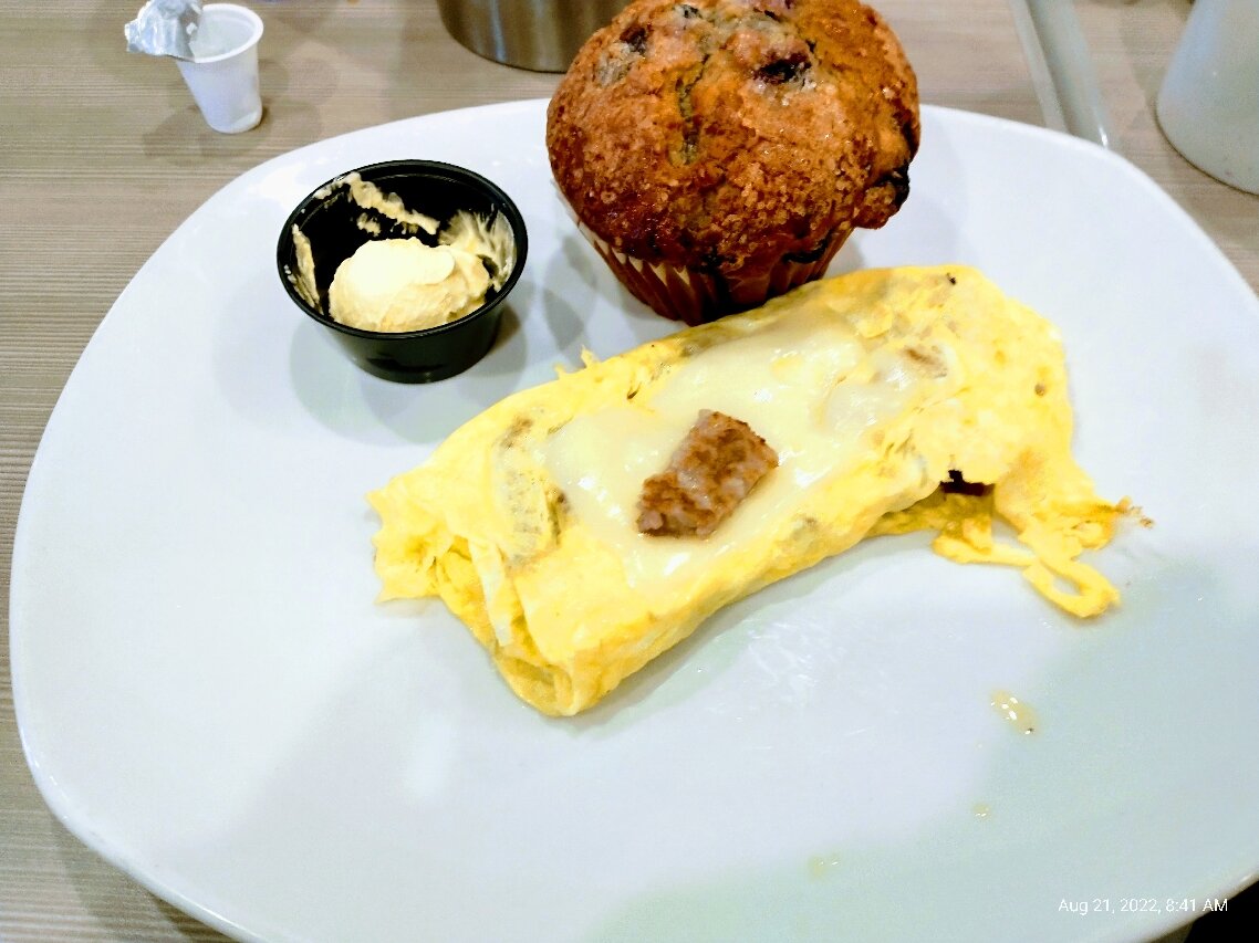 Greeted immediately, and with a smile. Waitress Kim had a great attitude and no problem with our orders, even though we made them up. She was quick with the coffee and very pleasant. Orders were up quickly and we enjoyed our leisurely breakfast. Thank you Kim for a nice experience.