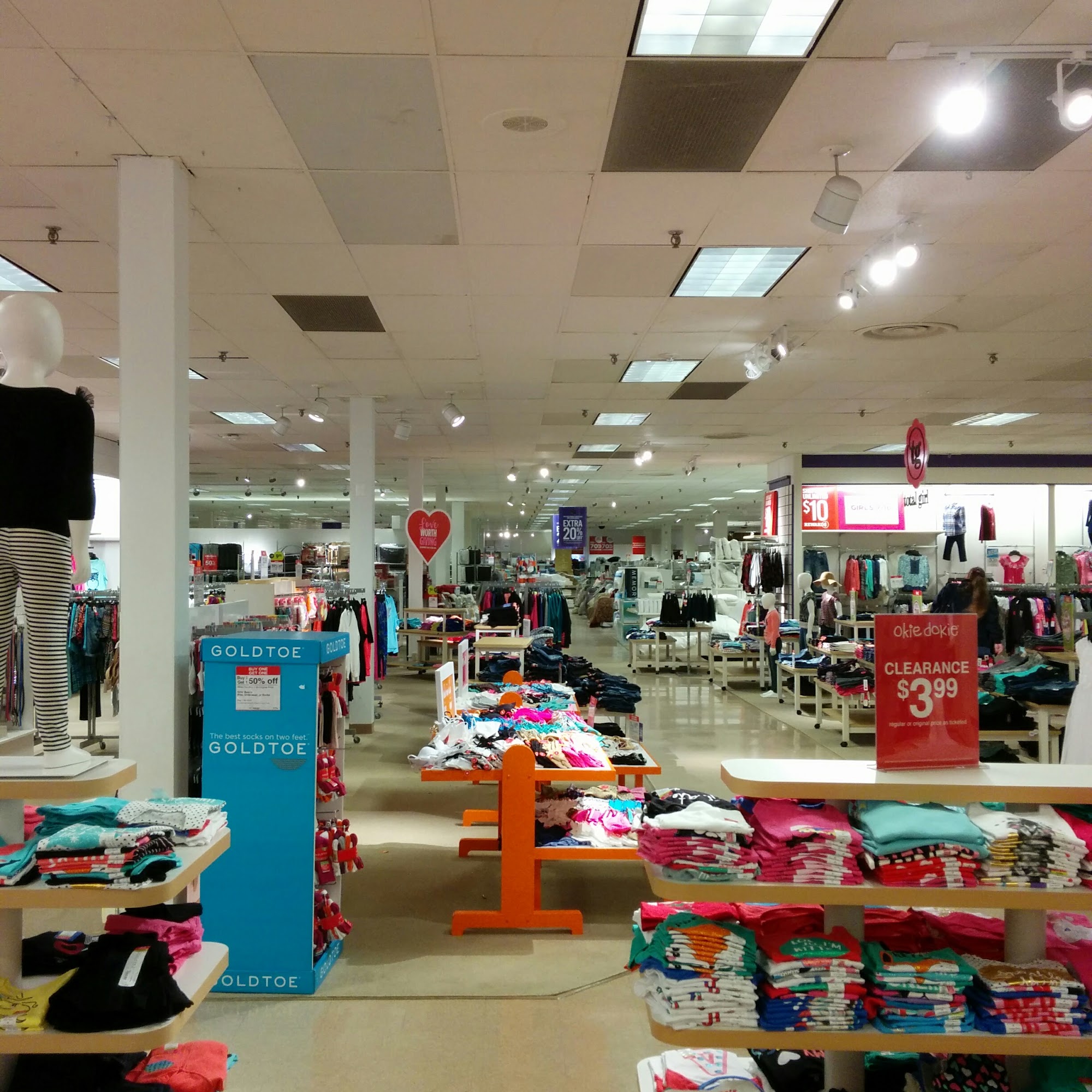 Had a christmas return. Decided to look around. Stand alone store. Big store not crowded. All pink sticker items were $5. Spent $50. Good atmosphere. Friendly cashiers. Great deals if I had all day to actually look. Almost got the Penny's card too. Would definitely recommend this Penny's. Has a upstairs too.