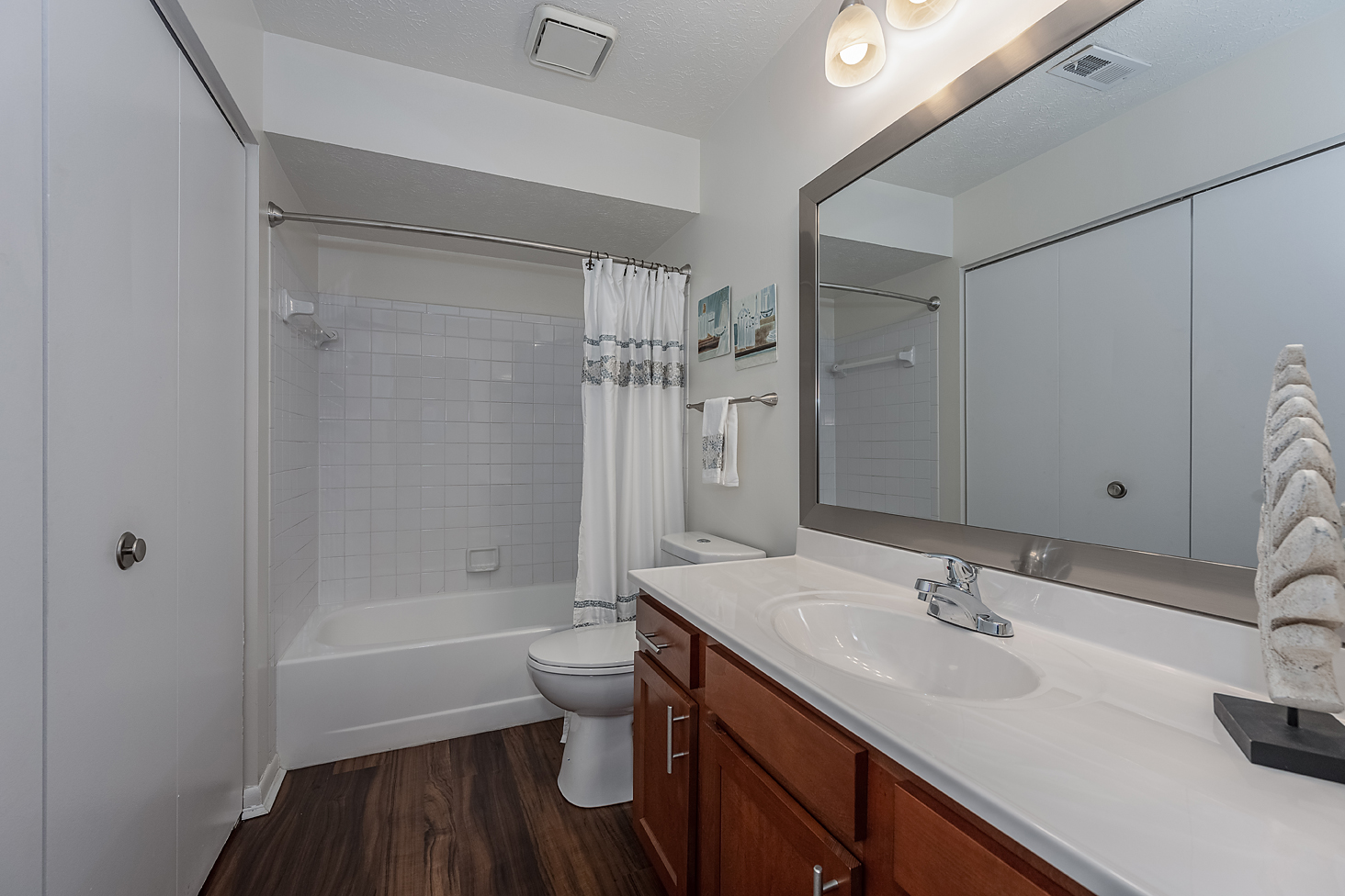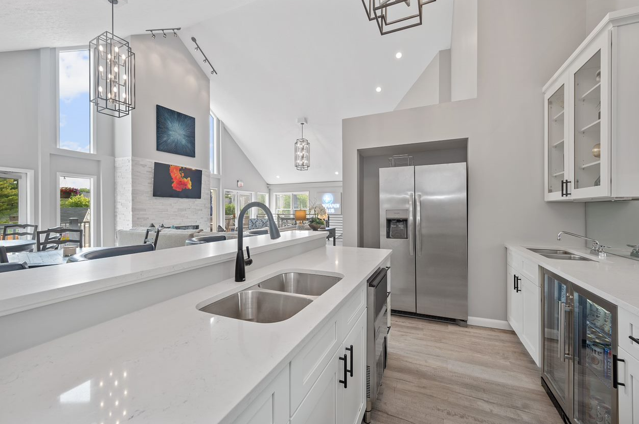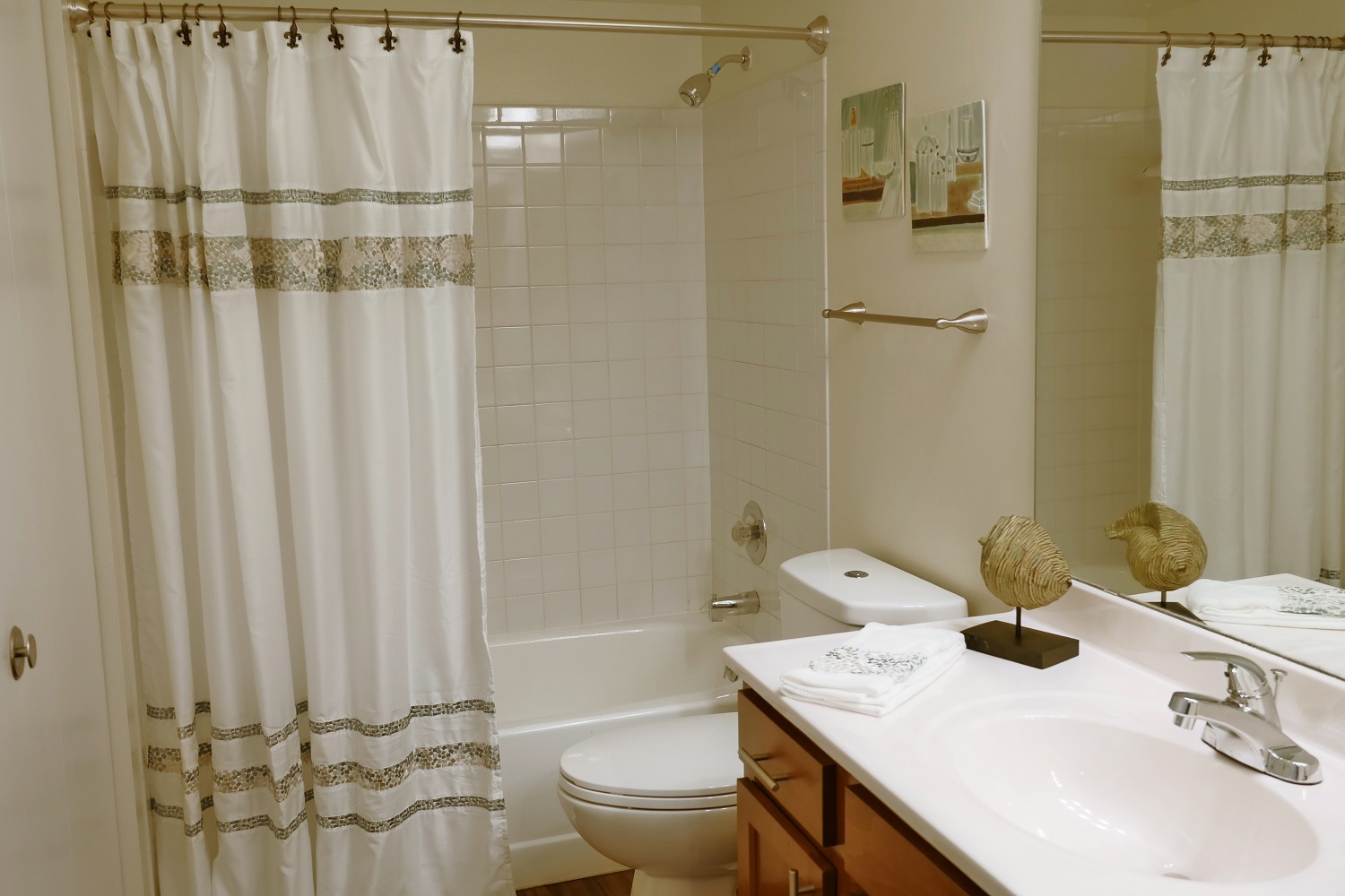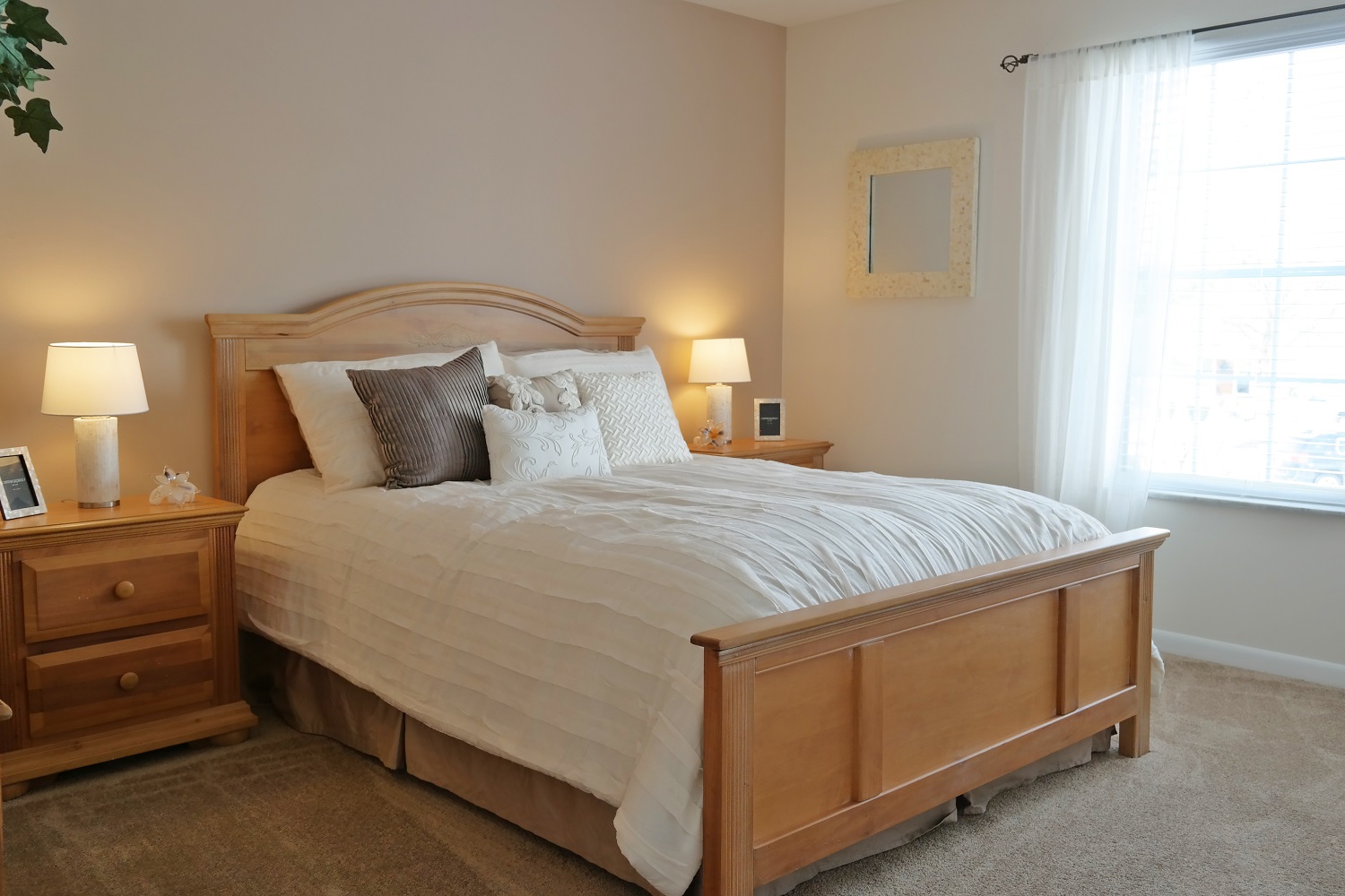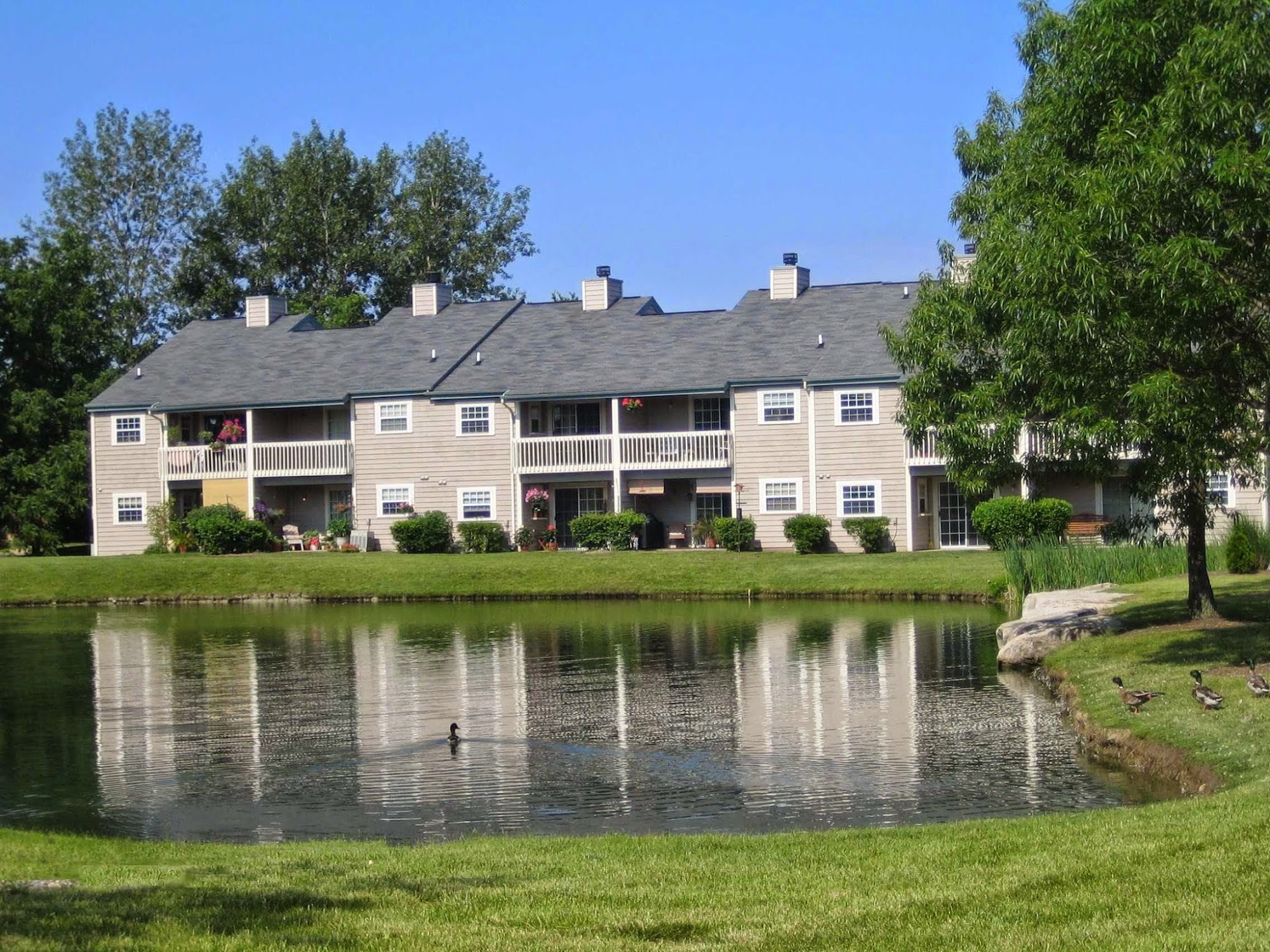 Two-story buildings with private apartment entries clustered around mini-cul de sacs each with a view of the beautifully landscaped grounds and/or ponds. One- and two-bedroom apartment interiors have been elegantly updated with all new kitchens and baths, 2” faux wood blinds, and brushed nickel light fixtures and hardware. Some apartment homes feature vaulted ceilings, wood-burning fireplaces and beautiful water views. Welcome to your new home.
