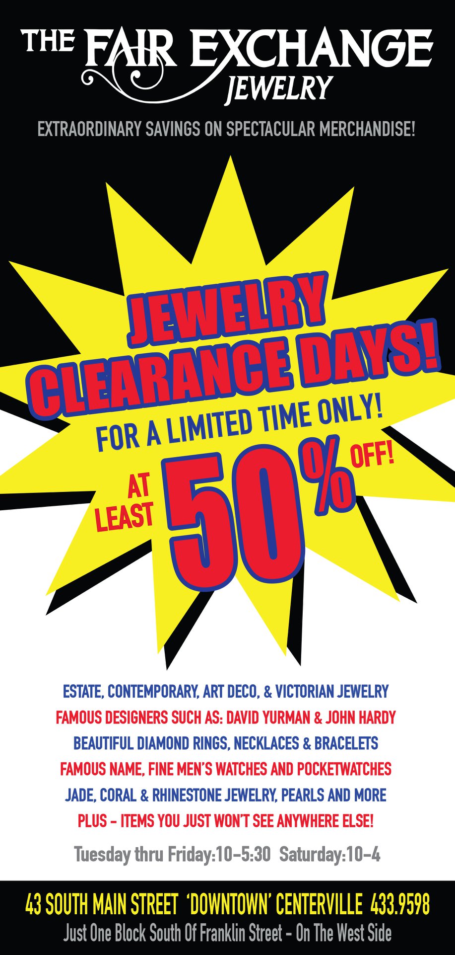 Excellent service. Very knowledgeable re fixing older jewelry. Beautifully lit display areas. Reasonable prices.