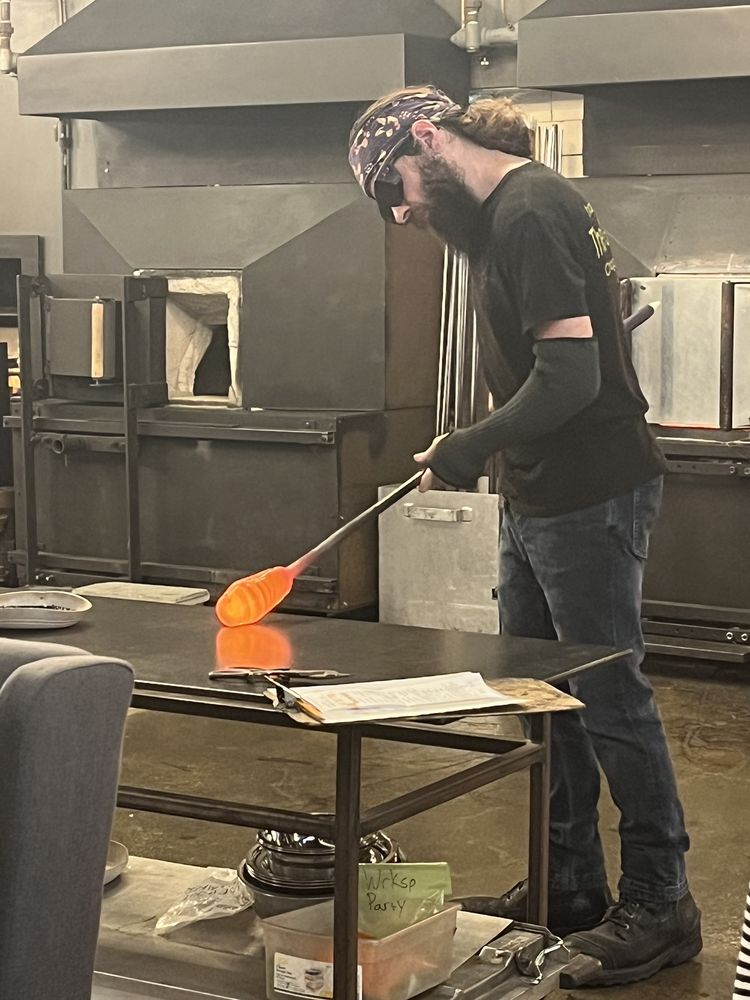 The Glass Asylum is Northeast Ohio's premier glass-blowing studio located in the beloved village of Chagrin Falls. It is a hot-spot for art and entertainment, offering a supportive community of glass artists and staff who collaborate with each other and the public to create unique experiences and works of art. The customer service at The Glass Asylum is great, with the staff being super nice and helpful. The studio has a lot of options for things you can make during your session, and the location is very clean and modern, providing a nice environment for the glassblowing experience. However, the process can be quite rushed, with the employees doing most of the work while the customers are more like second assistants. Parking around the location can also be a challenge. Despite these minor drawbacks, The Glass Asylum is highly recommended for both individuals and groups looking to explore the art of glassblowing. The staff is amazing, and the overall experience is described as great, fun, and worth the trip, even for those traveling from out of state.