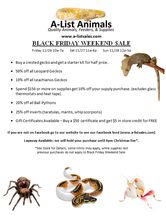 I got my beautiful California king snake from them for my birthday and she is healthy. Staff was super friendly and let me come in and get her when they were getting ready for a convention. Snake is tame and I love her so much.