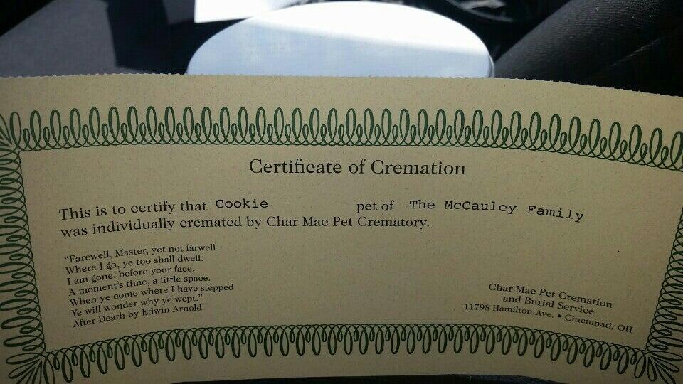 I am so thankful for everyone at Char Mac, they were so kind and helpful while I was going through a rough time. The presentation of Casey that was returned to me was beyond my expectations. Thank you for treating my boy with such care.