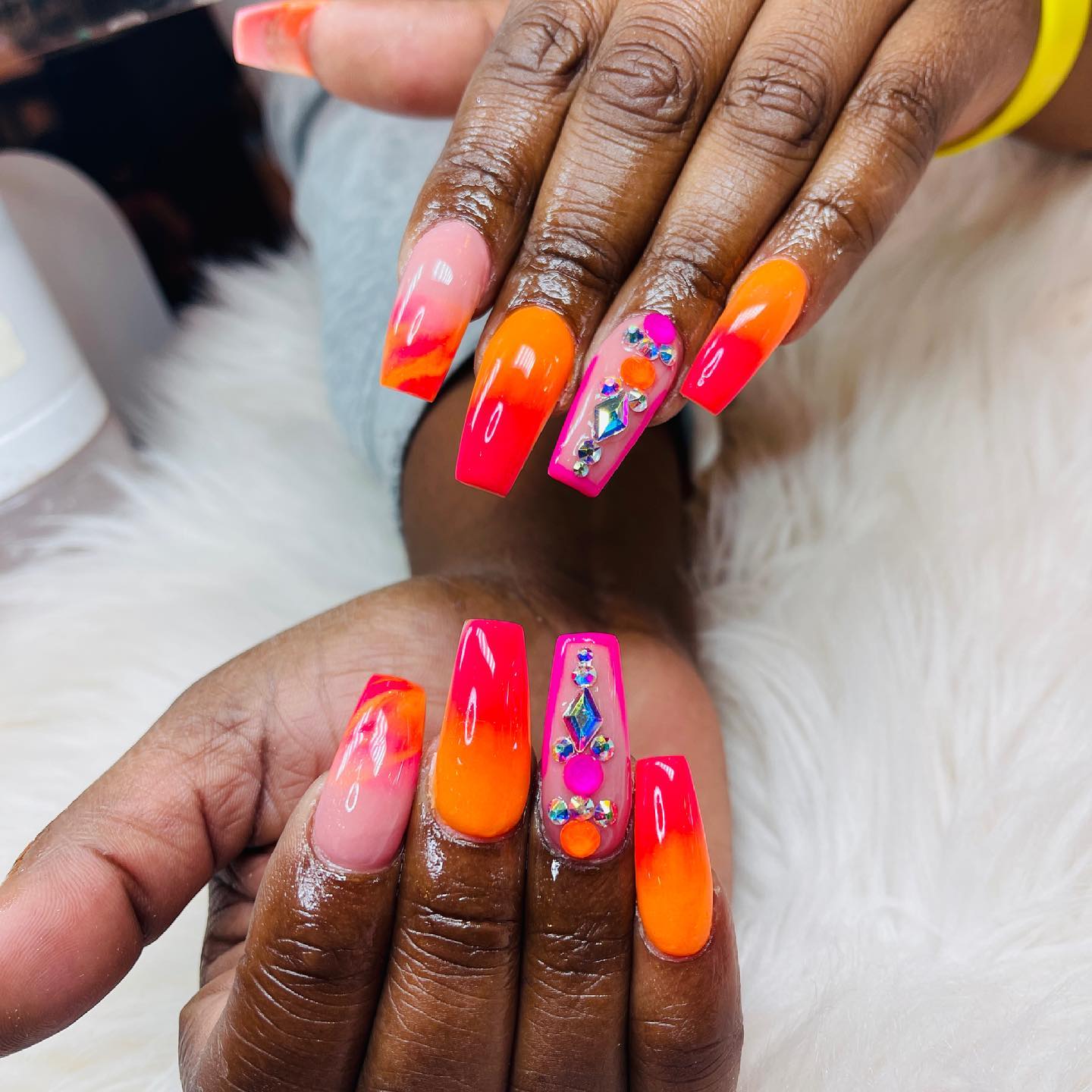 We do everything on the nails, ombré, designs, long nails, short nails. Anything that you can imagine, we can do it on the nails.
