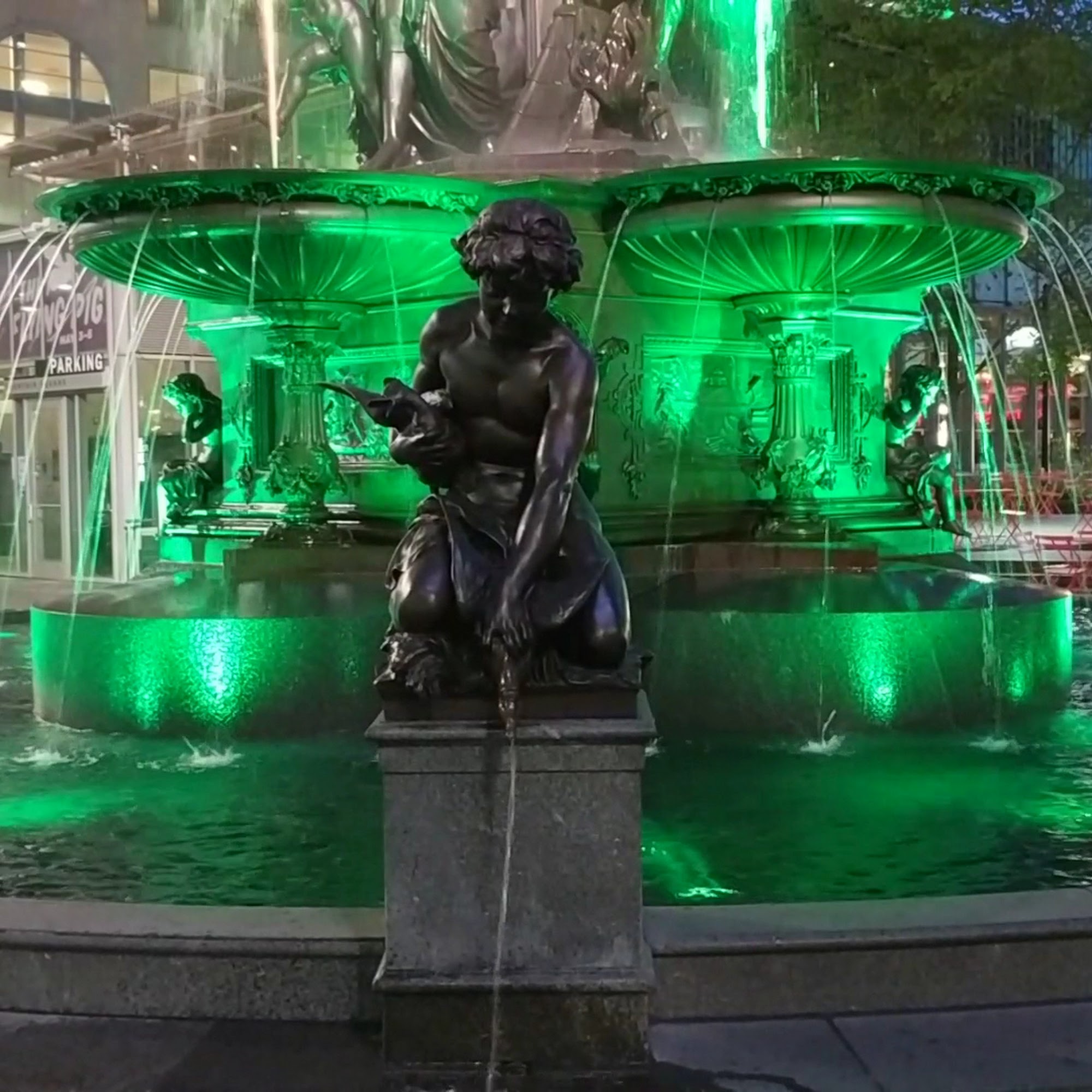 Fountain Square is a truly iconic fountain and gathering space in downtown Cincinnati. It is a historic Tyler Davidson fountain with an impressive sculpture of a woman, a performance stage, a jumbo TV and several eating establishments nearby. The built in concert venue free concerts in summer and events in winter, and the night‑time views are great with beautiful illumination. Food trucks and restaurants such as Jeff Ruby's are quick and easy meals. The atmosphere is nice for hanging out in the evening, with salsa on the square on Thursday nights and other events from May‑September. It is a great place for families, friends who want swinging by after nightfall.