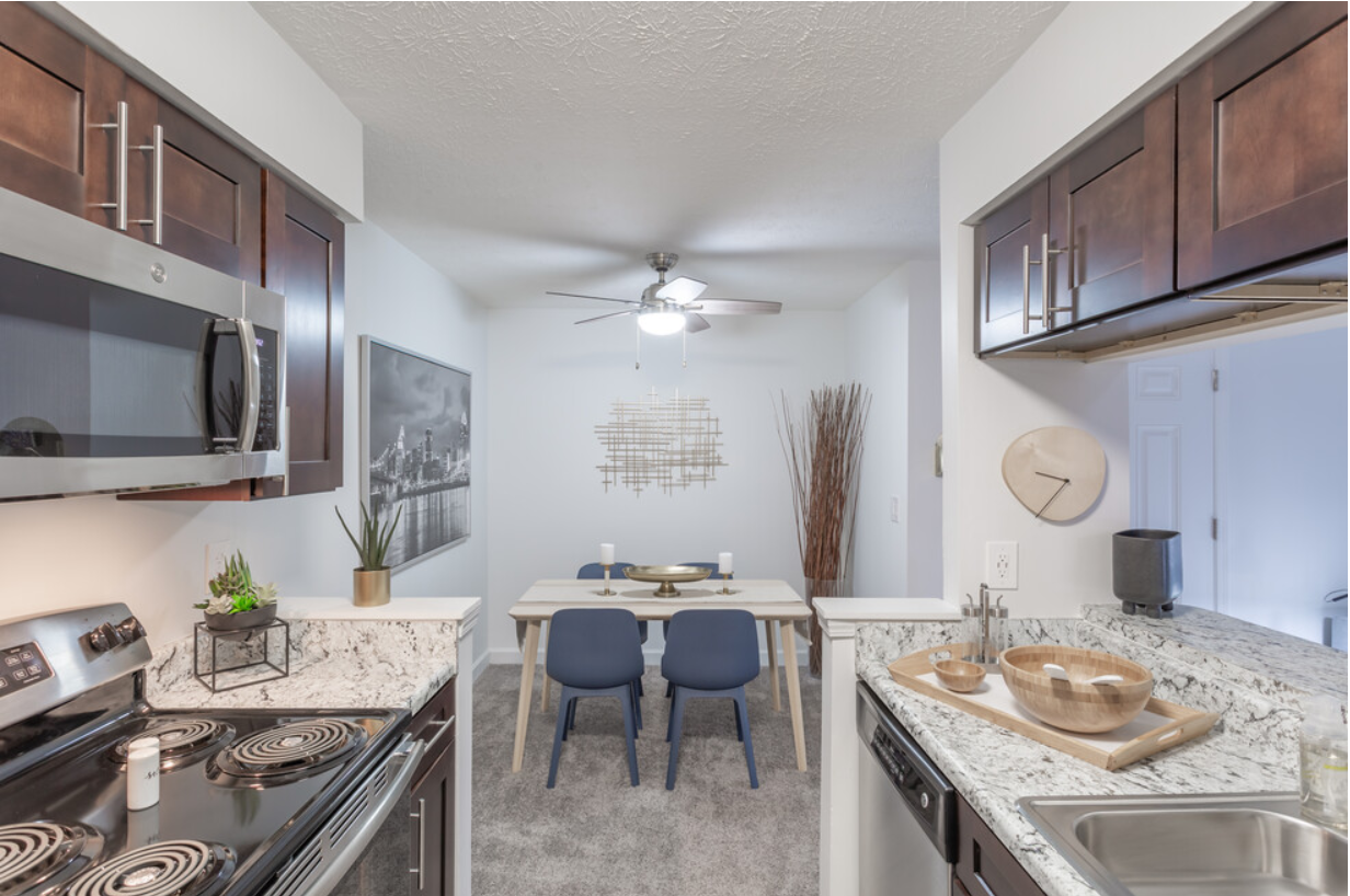 Several buildings sport all new exteriors smartly finished with stone entries, and our newly upgraded interiors with espresso cabinets, modern hardware, stainless appliances, granite-inspired counters, and faux-wood kitchen flooring are sure to impress. But whether you prefer the stylish new finishes or the standard finishes available in most homes, you’ll find our two-bedroom and two-bedroom plus den apartment homes bright and comfortable. Plus, you can complement your lifestyle with our great new amenities. Take a stroll through the manicured grounds, shoot some hoops, relax by the pool, enjoy a game of volleyball or pickle ball, work out in the gym, or take your pup for a run at our new Bark Park