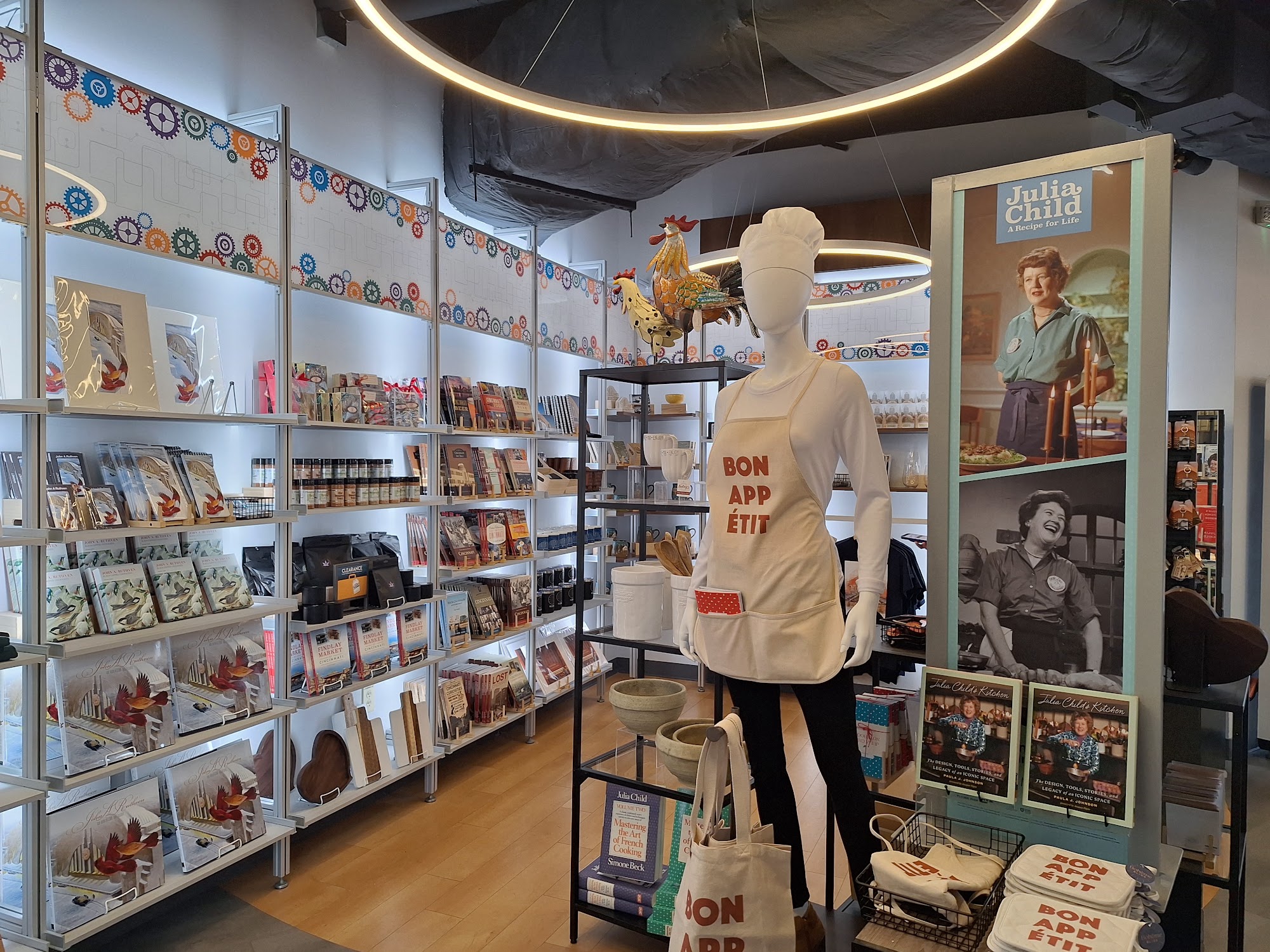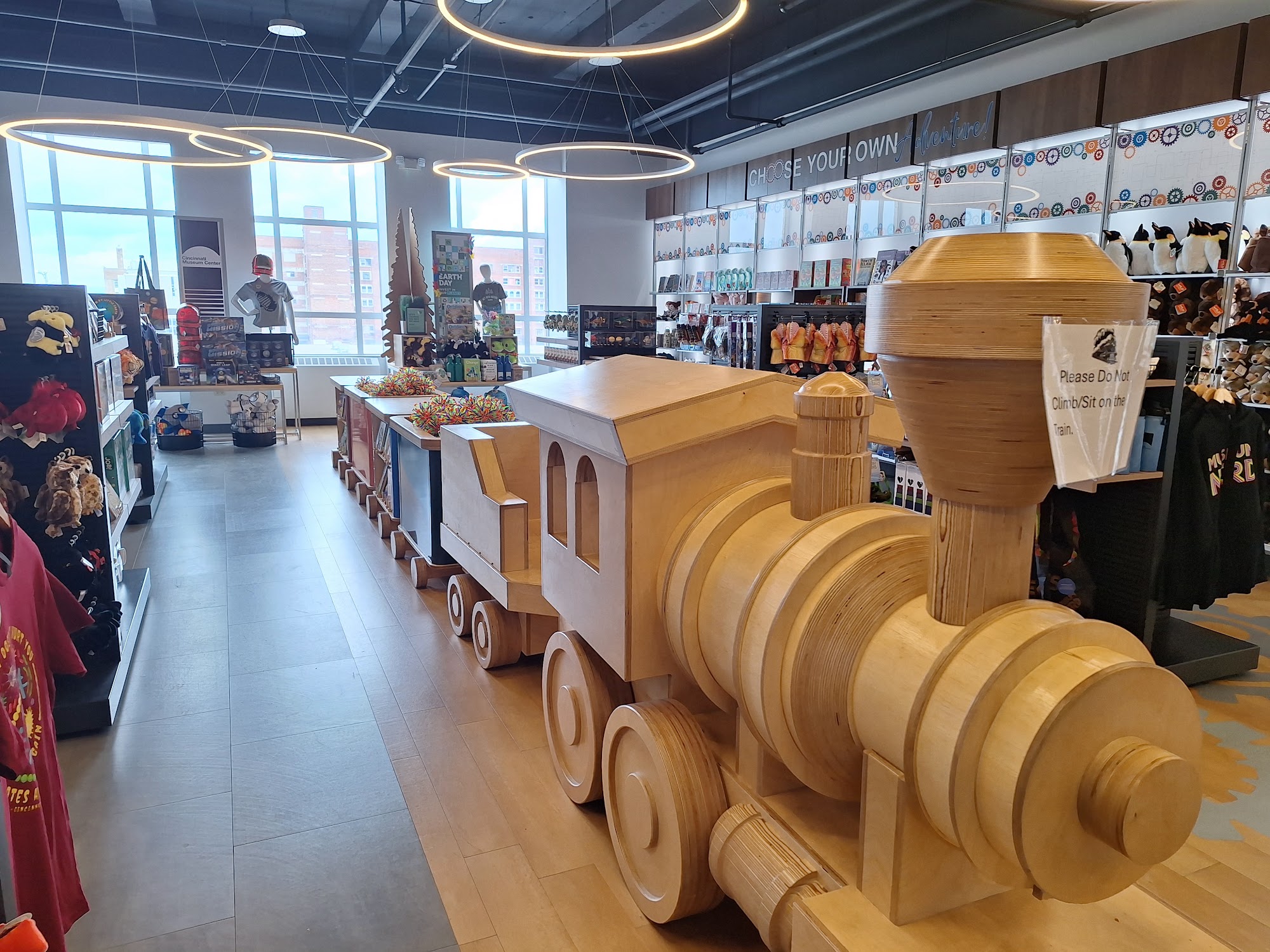 The Museum Store offers a variety of interesting products, including books, pretty magnets, and museum attire. The merchandise is wholesome and great for kids, especially if they like trains, with some items being a bit expensive. The store is smaller than it used to be, having been downsized and now partially extending into the natural history wing of the museum. The museum itself is very kid-friendly, featuring many visual and interactive displays that bring Cincinnati's history to life. Visitors can explore a railroad scale model of the city during the turn of the century, with moving trains, streetcars, and changing lights to depict different times of day. Exhibits include a Coney Island ride scene, antique cars, a streetcar to enter, a large replica steam wheel boat, and a recreated city from the past with printing presses and dressmaking shops. There is also a section showcasing items made in Cincinnati. Overall, it is a great museum for visitors of all ages to experience Cincinnati’s history in a fun and engaging way.