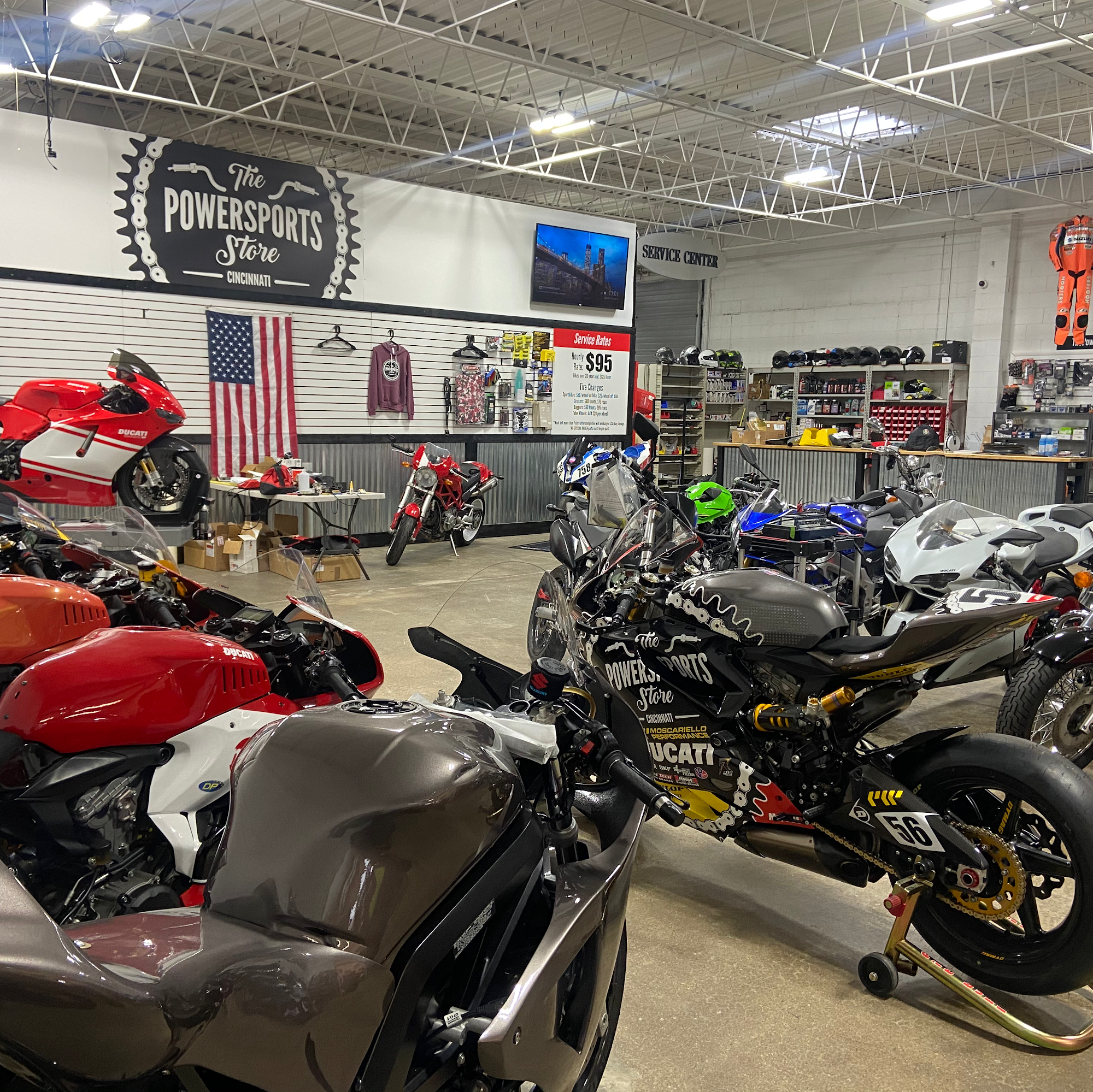 The Powersports Store is a veteran-owned Triumph motorcycle dealership in Cincinnati providing motorcycle sales, service, parts, and accessories. It is widely regarded as the best shop in the city, especially for those into track days, speed, and performance, serving as a one-stop shop. The business treats motorcycles like their own and works on a wide variety of brands including Triumph, Ducati, Aprilia, MV Agusta, KTM, BMW, and metric sport bikes. They cater to trackday and roadracing clientele with services like in-house dyno tuning, MotoTrainer sessions, and as dealers for Alpinestars suits and Tech-Air as well as Rev'it! TailorTech custom race suits. The shop is noted for its excellent pricing and willingness to price match internet retailers. Customers report finding value-priced motorcycles, often well below book value. The service side is highly recommended, described as very professional and knowledgeable, frequently going above and beyond expectations to help clients, such as completing urgent repairs to make a track day. The owners and crew are consistently praised as the nicest people and the best, creating a reliable and customer-focused experience. It is a first-choice recommendation for many riders.