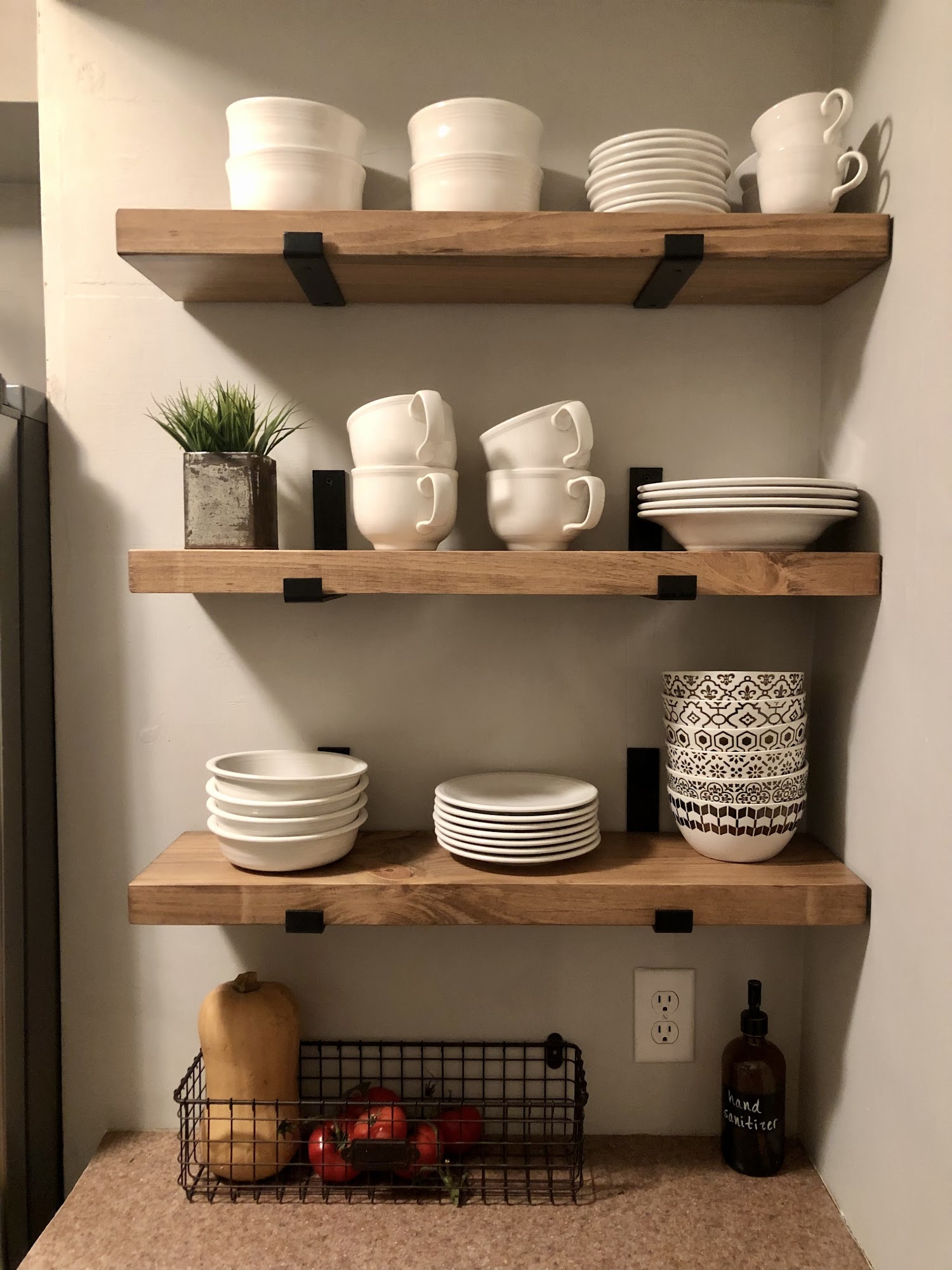 Love my new shelf! You can tell the wood is high quality. It looks so beautiful in my kitchen and the look is classic so it will last many years