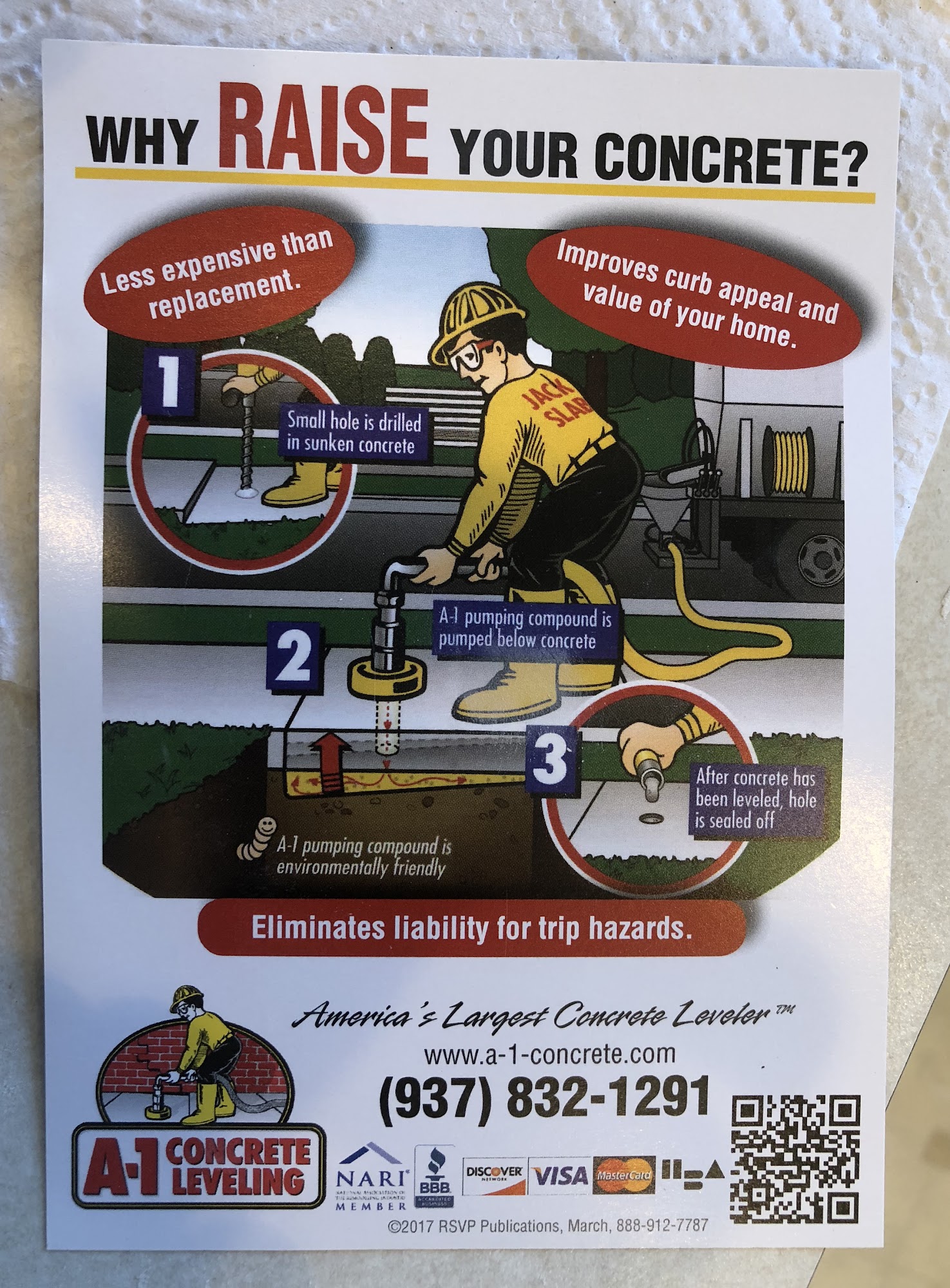 Called A1 about an issue with my slab. They came out and were honest that it would cost more to have them fix it and how easy i could. I appreciate their honesty