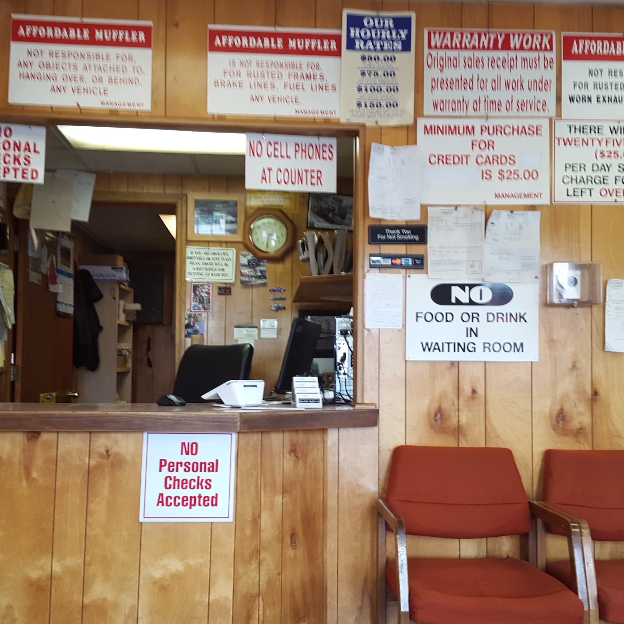 The guys at Affordable muffler were great In and out in 45mins as promised John was exceptional loved his great sense of humor as him and my husband talked about living with all females in the house it was like we were neighbors had a great time while waiting would definitely recommend 5 stars