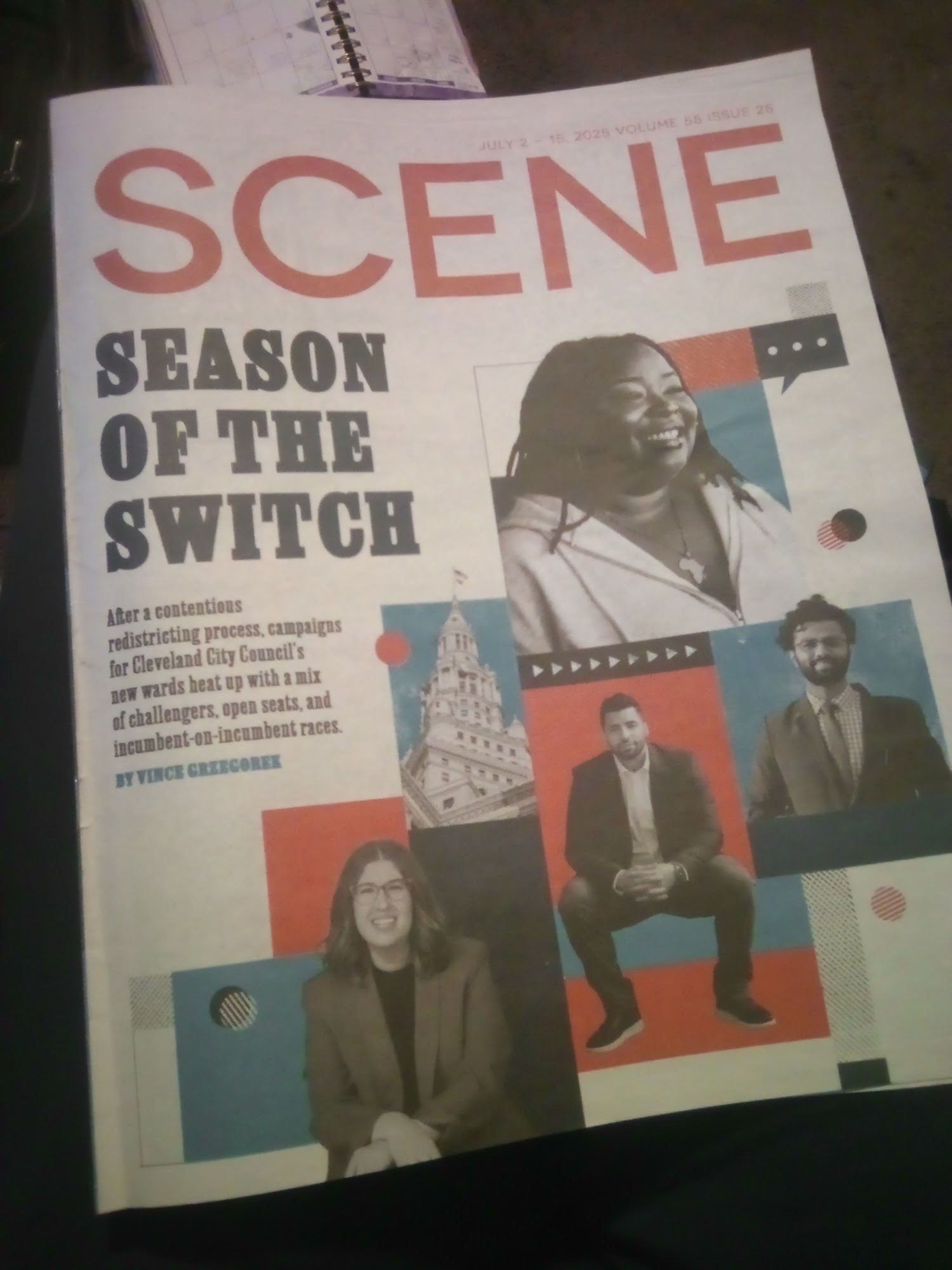 The magazine is in, across from the entrance on the opposite edge of the sidewalk!