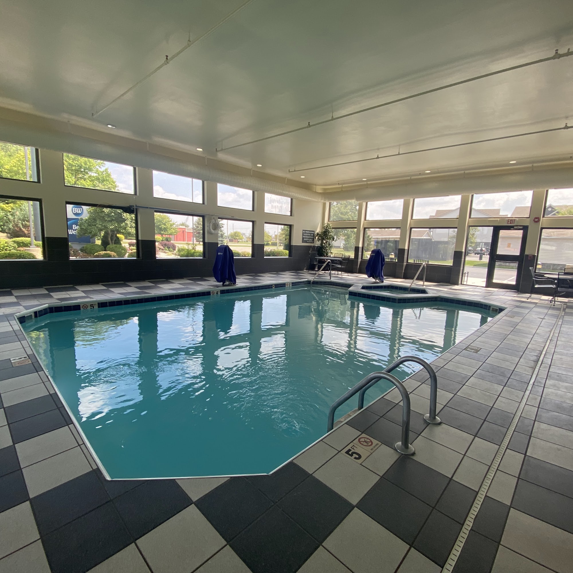 Best Western Suites offers a mixed experience for guests. The hotel features a spacious breakfast bar and an old-style staircase in the lobby, which some guests found charming. Many guests were pleased with the size and cleanliness of their rooms, and the proximity to nearby shopping and dining options was a plus. However, some guests encountered issues during their stay. The lack of carpeting in the rooms made the space feel colder, and the free movie channel had no free movies available. Safety concerns were raised, as there was no wall-mounted handle for entering and exiting the shower. Additionally, the trip to the ice machine was described as "precarious" due to a malfunctioning door. The hotel's amenities, such as the indoor pool and hot tub, were a disappointment for some guests, as they were closed for maintenance during their stay, despite being advertised as available. The pool area also had a strange odor, and the hot tub water was discolored, with a thick layer of grime on the walls. The staff's friendliness and professionalism were mixed, with some guests reporting excellent service, while others found the staff to be rude. One guest even encountered difficulty when trying to check out late. Overall, Best Western Suites offers a varied experience, with both positive and negative aspects. While many guests enjoyed the spacious rooms and convenient location, the hotel's maintenance and customer service issues seemed to detract from the overall experience for some visitors.