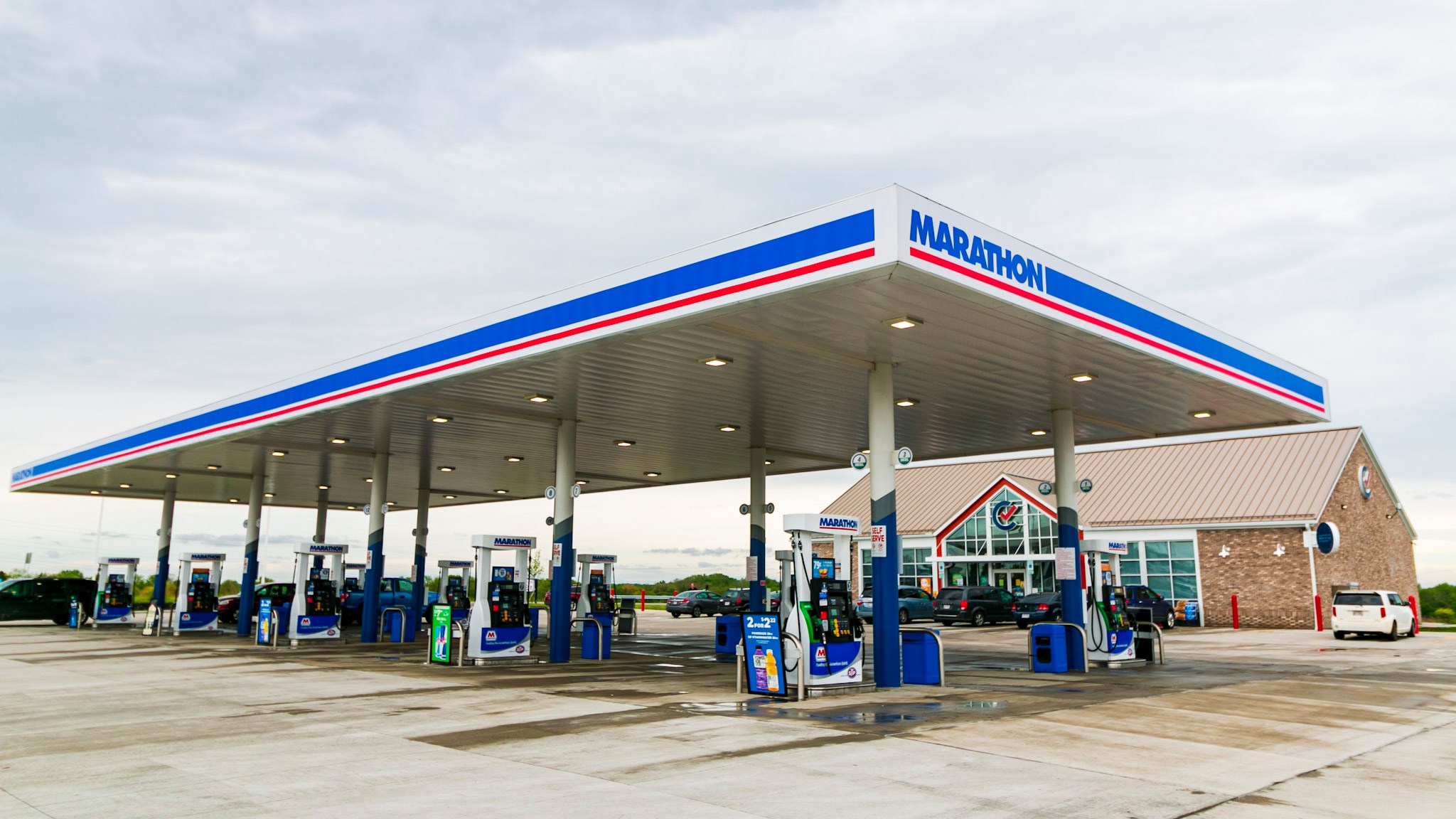 This business combines a Marathon gas station and a well-stocked convenience store. Clean, well-organized, large selection. Has pizza and subs, and huge selection of drinks. Clean restrooms.