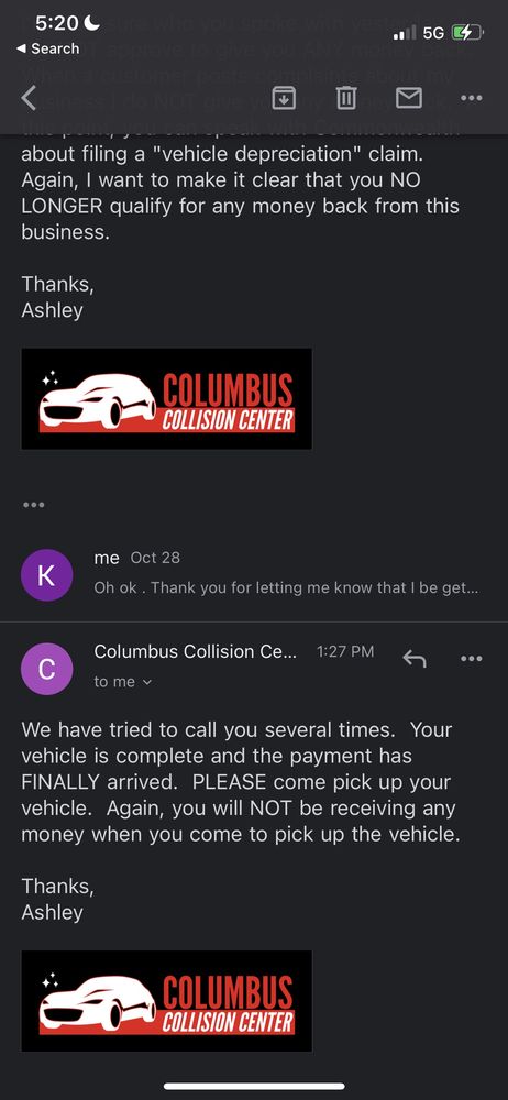 Columbus collision fixed my car they did a great job and did it very quick it looks great