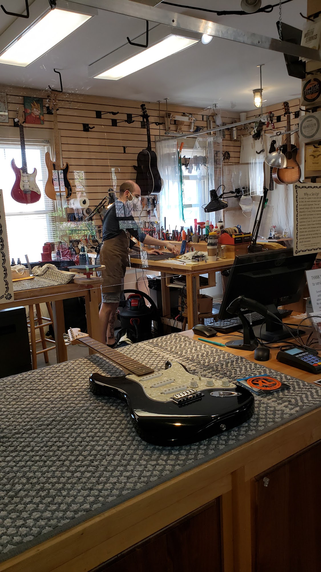 Guitar House Workshop is a family owned fretted instrument repair shop, lesson studio, and retail music store. It is a community based, full service shop with knowledgeable staff, talented teachers, and a friendly atmosphere. The shop specializes in individualized attention and superior service. The staff are nice people, very patient, and not pushy sales people; they treat you as a friend to help make the best decision. They give good advice and provide excellent service and support for instruments. Experienced luthiers are custom guitar builders who do excellent work on major repairs and setups, always with excellent results. Good work takes a while, but guitars play and feel amazing afterward. It is a great place to buy guitars, with a recommendation to shop local over big name stores. Customers highly recommend this guitar shop and confirm you will not go wrong giving your business to Guitar House Workshop.