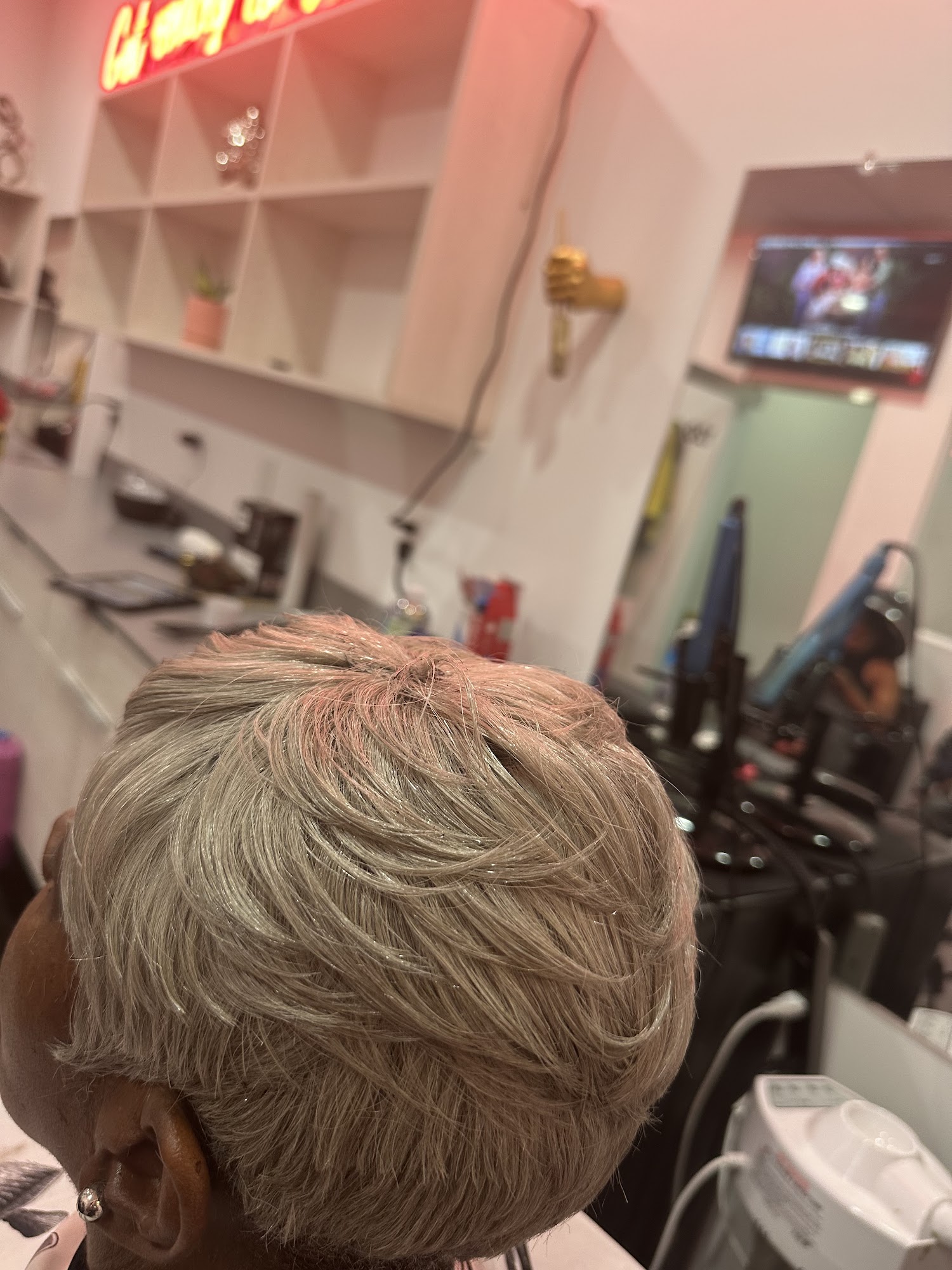 Professional nice shop, will definitely return- new to the Columbus area and was looking for someone who just knows hair! Glad I selected well. I was coming out of braids and needed a change after! Cut, wash, color rinse style. All well done.