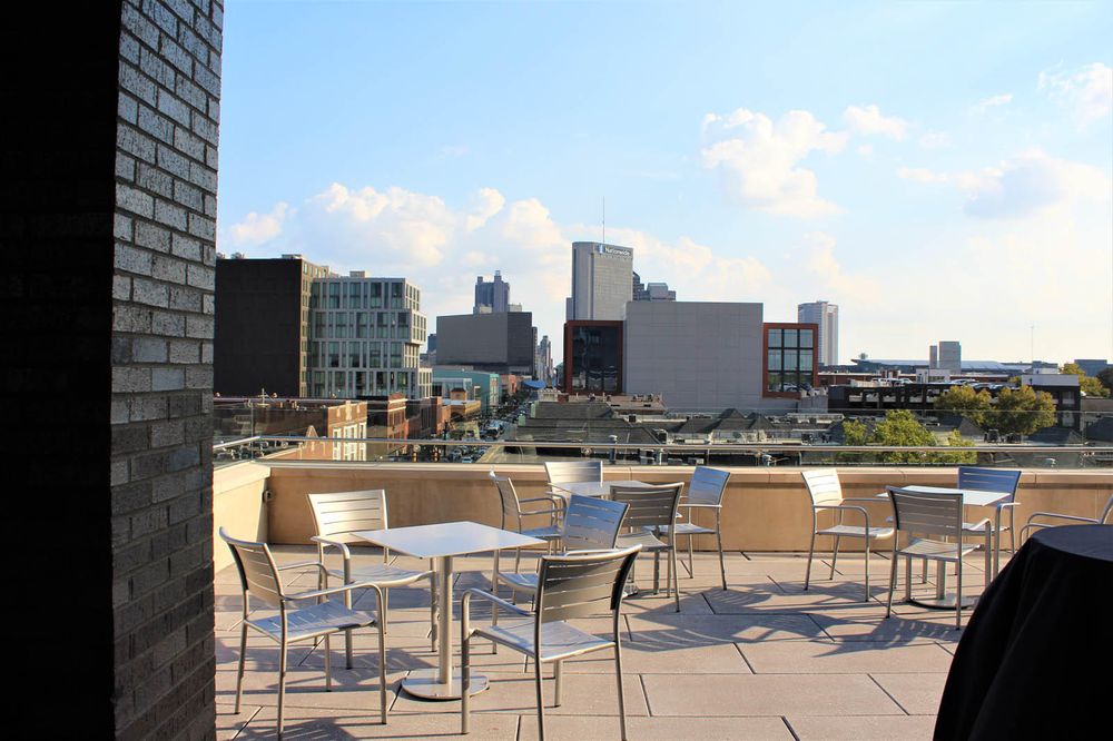 Located in the Short North Arts District, The Terrace is a versatile, intimate event space, just steps from High Street, making it the perfect setting for your event. The Terrace accommodates up to 100 guests for plated events, up to 75 guests for buffet style, and between 100-125 guests for standing receptions. Located on the fourth floor of the Lincoln Building, The Terrace is 3,900 square feet and offers an unmatched view of the vibrant Short North Arts District.