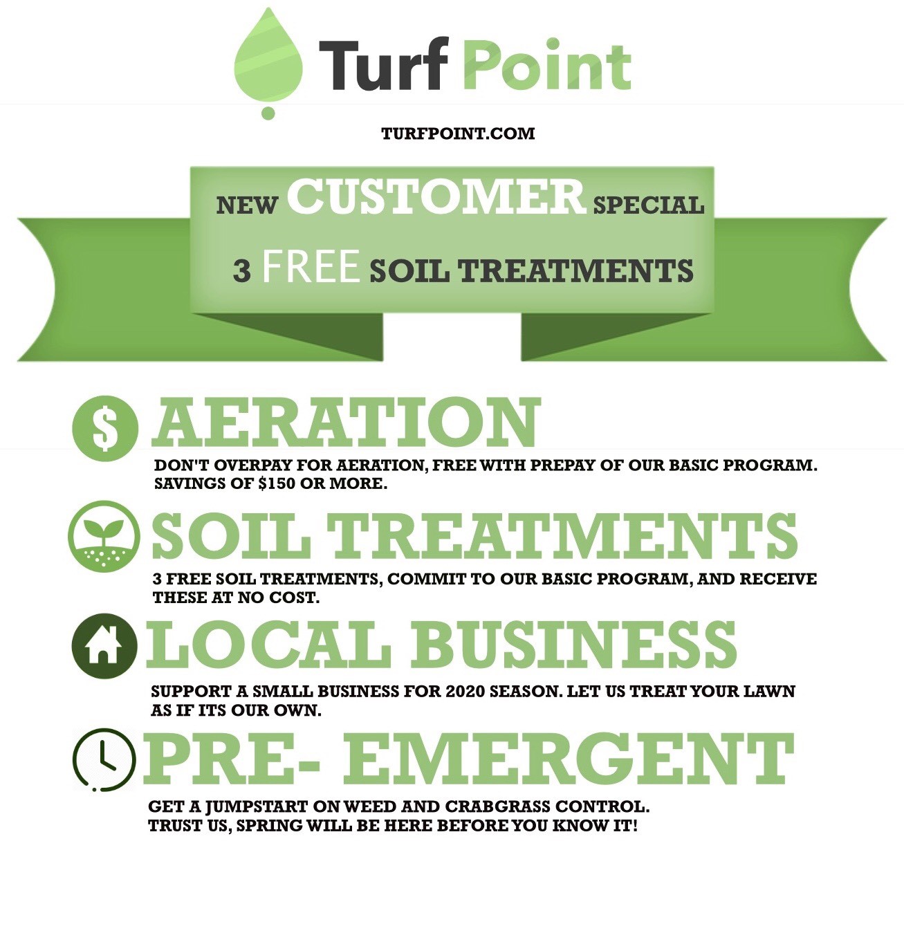 Hometown Turf is a locally owned fertilizing and weed control company that also offers mosquito control, pest control, tree and shrub care, aeration services and also seeding. We offer services in the North Dayton and South Dayton markets. We have over 20 years of experience in the industry. Turf Point is also a huge contributor in donating to local non profits such as Fostering Ohio, and helping sponsor youth sports teams too.