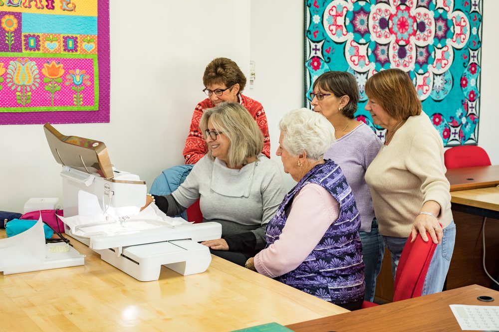 We proudly offer the finest fabrics, a wide assortment of notions, and the top three sewing machine brands in the industry: Pfaff, Babylock and Bernina. We are a staff of passionate quilters eager to share our knowledge and skills with you. We love to educate, support, encourage and inspire you! We have an extensive line up of classes each quarter, offer free hands-on training with every machine purchase, have two full-time in-house service technicians, and pride ourselves on our beautiful samples that are sure to spark your creative juices. We're all about creating community, and we hope you feel right at home every time you visit us.