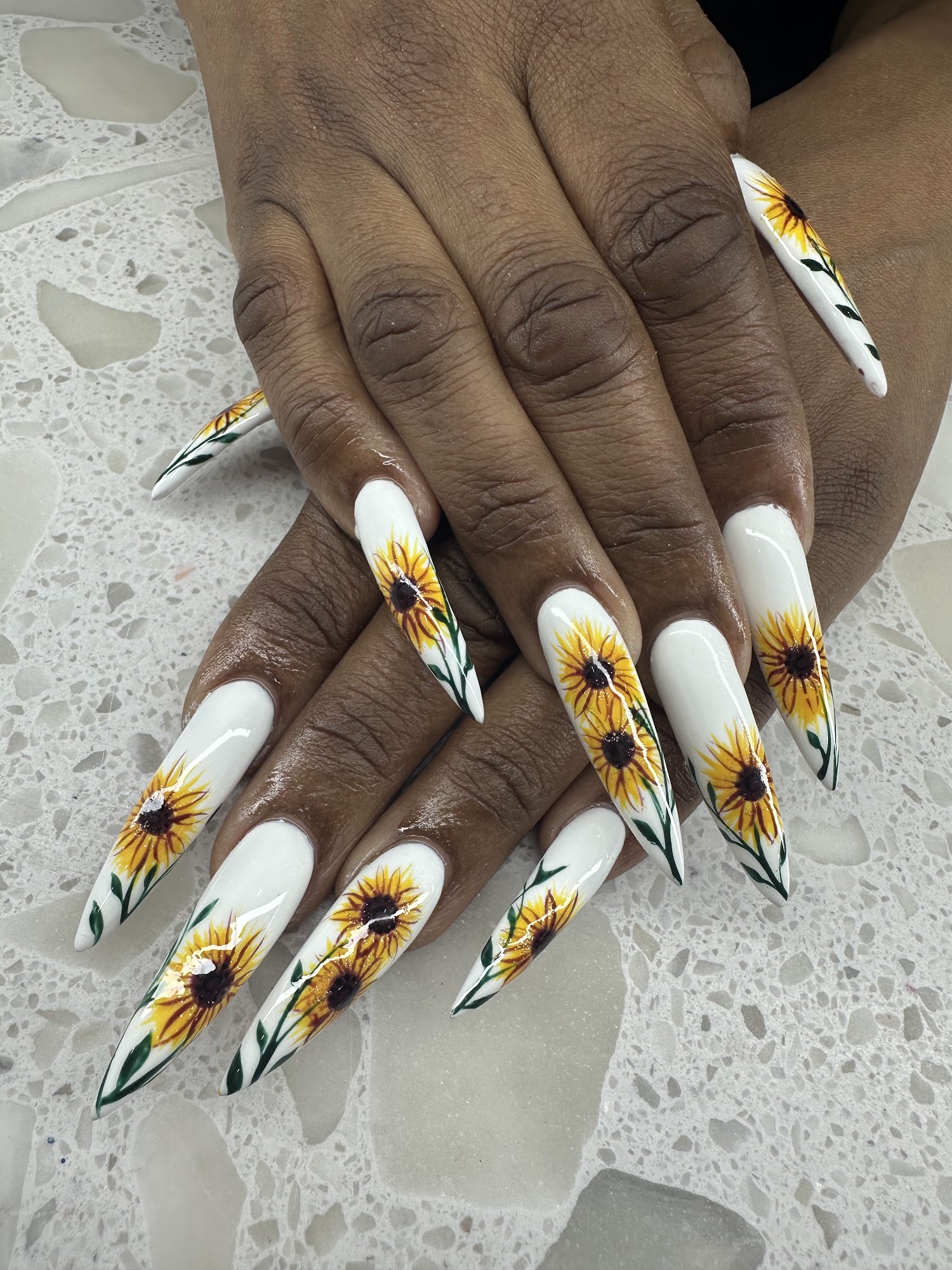 Nails By V is a highly recommended business. The owner, V, is a skilled and experienced professional who offers exceptional services, including acrylic nails. Customers praise her creative instinct, unrivaled skill, and personalized approach. The shop is known for its pleasant, calm, and clean atmosphere, with a personal touch in its scheduling and communication. Customers appreciate the fair prices, impeccable quality, and great advice they receive. The business is popular among clients, who describe it as a top-ranking experience, with a welcoming and comfortable environment. V is praised for her professionalism, efficiency, and ability to deliver customized designs. Despite her busy schedule, she ensures each appointment is a personalized experience. The shop's prices are fair, reflecting the elevated service and consistency that comes from V's years of experience in the industry.