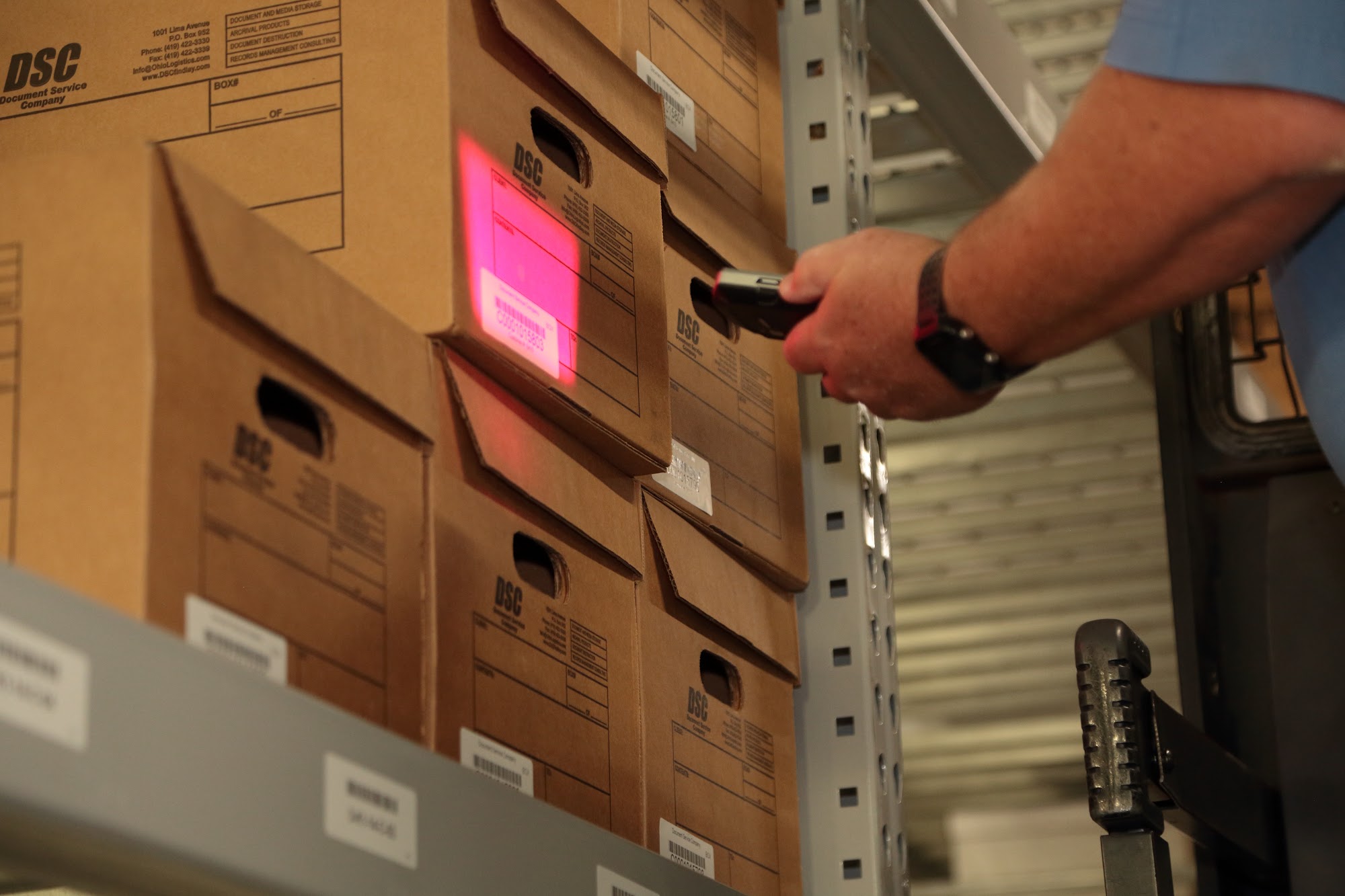 Located in Findlay, Ohio, our record storage facility keeps your information safe and secure. At Document Service Company, we offer a variety of storage solutions including, data protection, onsite shredding service, archival scanning, and more. Our goal is to help you optimize your office space without compromising the privacy of your client records. Our quick delivery and retrieval process ensures that you'll be able to access information when you need it. We even have an in-house, secure courier available 24/7! If you're ready to streamline your document storage process, get in touch with our team today to learn more.