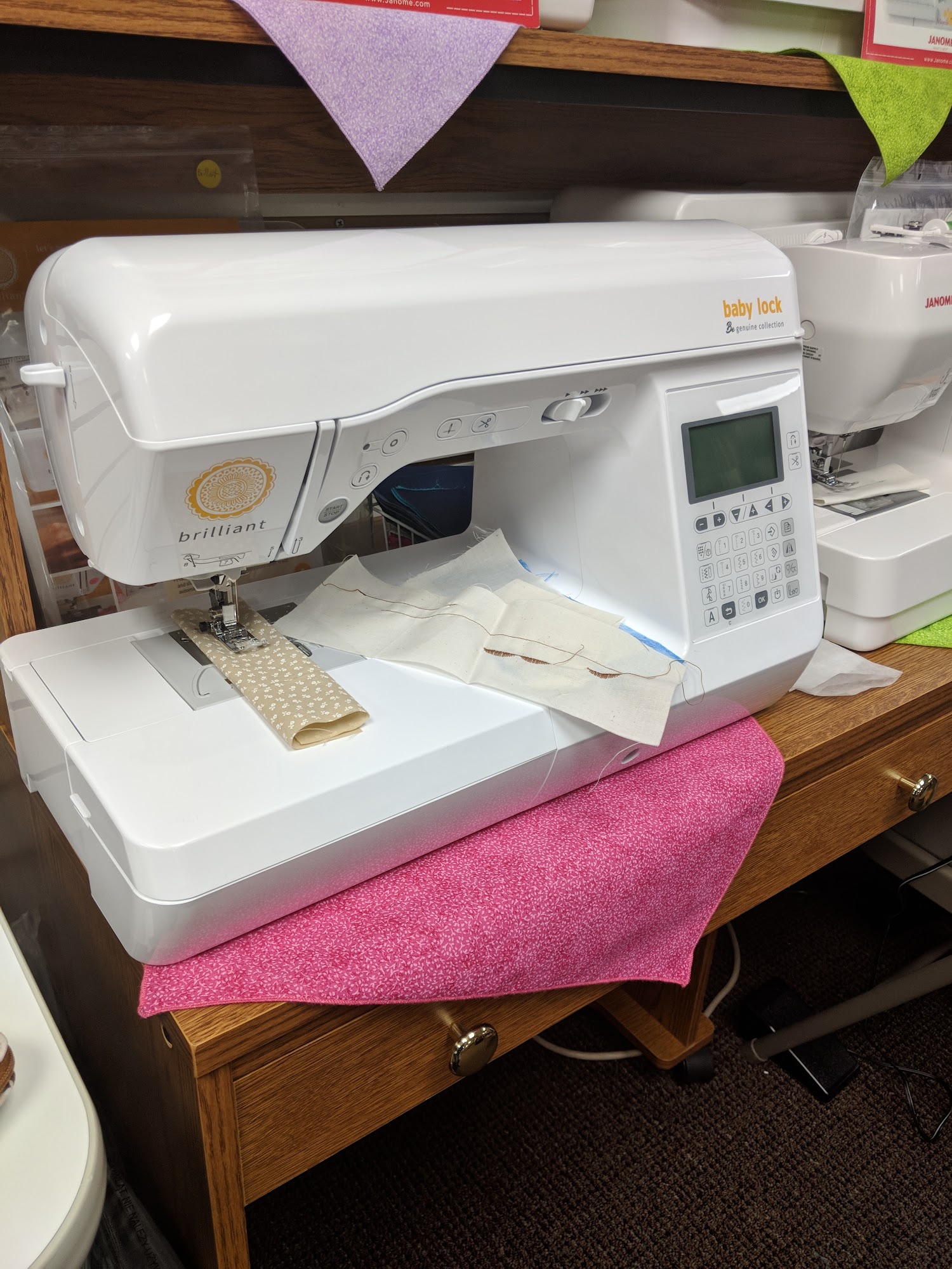 We are proud to sell new BabyLock and Janome sewing machines. We sell used machines traded in from our customers. We offer service on most brands of sewing machines performed by factory trained technician with 20 years of experience. Come and see our expanded selection of fabrics and project kits.