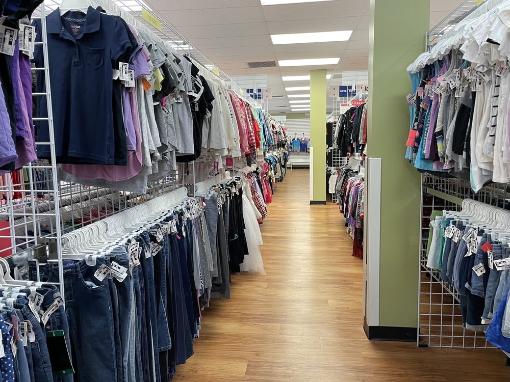 Once Upon A Child is a huge store offering kids clothes, plus sizes, and maternity clothes. The staff is friendly, helpful, and provides quick service. Reviews note the store is great for both shopping and selling, though sellers are advised to call first to ask if they are buying, as some days are better than others. The clothes are reasonably priced. A common mention is that the aisles can be very tight at times, though the staff tries to prevent that. Some feedback suggests reorganizing the clearance area to improve the checkout space. Overall, customers love the store.