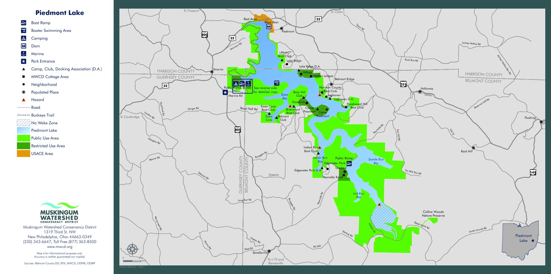 Piedmont Lake Marina and Campground in the hills of southeast Ohio offers a peaceful and scenic boating experience with a 10 hp motor limit. This 2,270-acre lake with a maximum depth of 38 feet provides great fishing opportunities for musky, saugeye, bass, panfish, and catfish. The campground features full hook-up campsites with 50-amp power, seasonal and transient docking, two public boat launch ramps, showers, and a laundry facility. Visitors can enjoy the lake's 38-mile shoreline for boating, kayaking, and fishing. The marina provides friendly and knowledgeable staff, offering bait, ice, and snacks. Campers can choose from RV sites, cabins, and newly added tiny houses, all set in a beautiful natural environment. The campground also features a playground, basketball court, and hiking trails, providing activities for all ages. Reviewers praise the marina's stunning deck dining, affordable pricing, and the overall peaceful and quiet atmosphere of the lake. The campground is open year-round, making it a popular destination for boaters, anglers, and outdoor enthusiasts alike. With its well-maintained facilities and scenic surroundings, Piedmont Lake Marina and Campground is a hidden gem that offers a memorable experience for visitors.