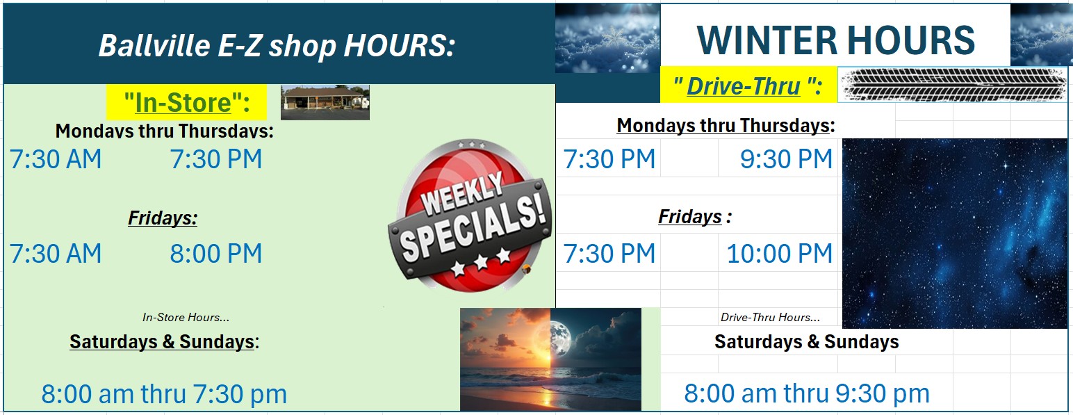 Ballville E-Z Shop is a great local market known for their meat, which is always amazing, fresh, and outstanding quality. The meat is the star with weekly and daily specials. They have a great selection of beverages and a cold bar with food for sale, including chicken salad, potato salad, and broccoli salad. The staff is very nice, friendly, helpful, and quick. Service is great. Although they tend to be pretty busy, the staff is easy to understand and communicate with. Customers have been going there for decades and for holiday meats, enjoying the fantastic prime rib, t-bone steaks, fryer chicken, ham steak, and sirloin burgers. They also sell lotto and have a drive-thru.