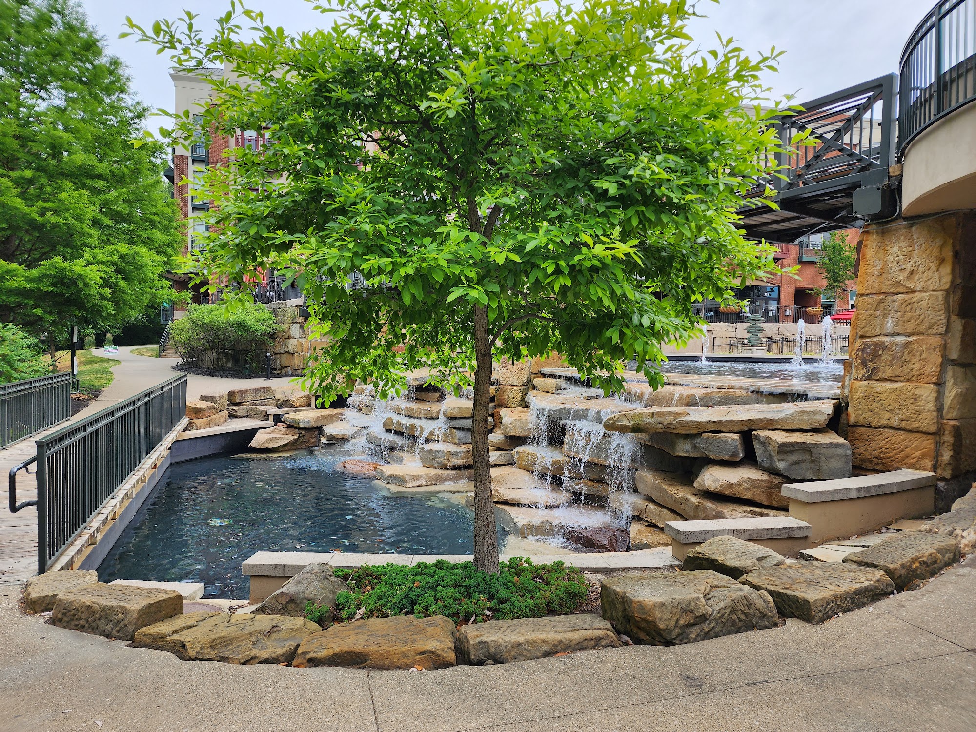 Creekside Park is a beautiful and welcoming area, especially popular during the holidays when the Christmas lights are beautifully displayed and continuously enhanced each year. It is a family-friendly destination with various activities and amenities for all ages. Visitors enjoy taking walks along the shaded paths and boardwalks that cross Big Walnut Creek, offering scenic views and a chance to get feet wet on hot days. The park is also dog-friendly, with many owners walking their dogs on leashes or without, making it a great place for pet owners. The park features clean, spacious restrooms located near the waterfall and other accessible spots. There are picnic areas with benches and flat rocks for relaxing and eating with friends or family. For entertainment, paddle boats are available for rent, adding to the fun. Many nearby restaurants are within walking distance, and visitors can also bring picnics to enjoy by the fountains. The environment is clean and well-maintained, although some trash along the creek can be seen occasionally. Parking is convenient, with a free parking garage and some free spots in town, though most parking requires a fee. Overall, Creekside Park offers picturesque scenery, pleasant walks, and a fun, family-friendly atmosphere for visitors to enjoy year-round.
