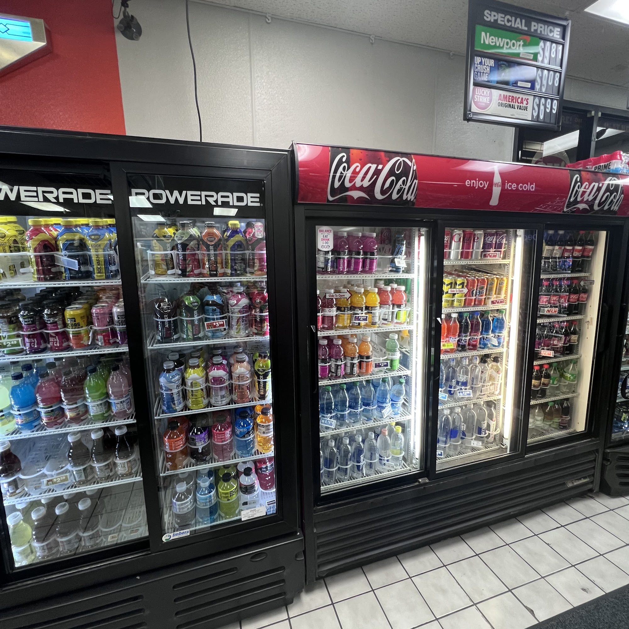 Small little truck stop with a couple semi truck parking. 3 diesel lanes. Well stocked store with average truck stop prices. Milk eggs cheese soda candy. No hot food. But have some micowave stuff. Quiet. Literally right off the road.