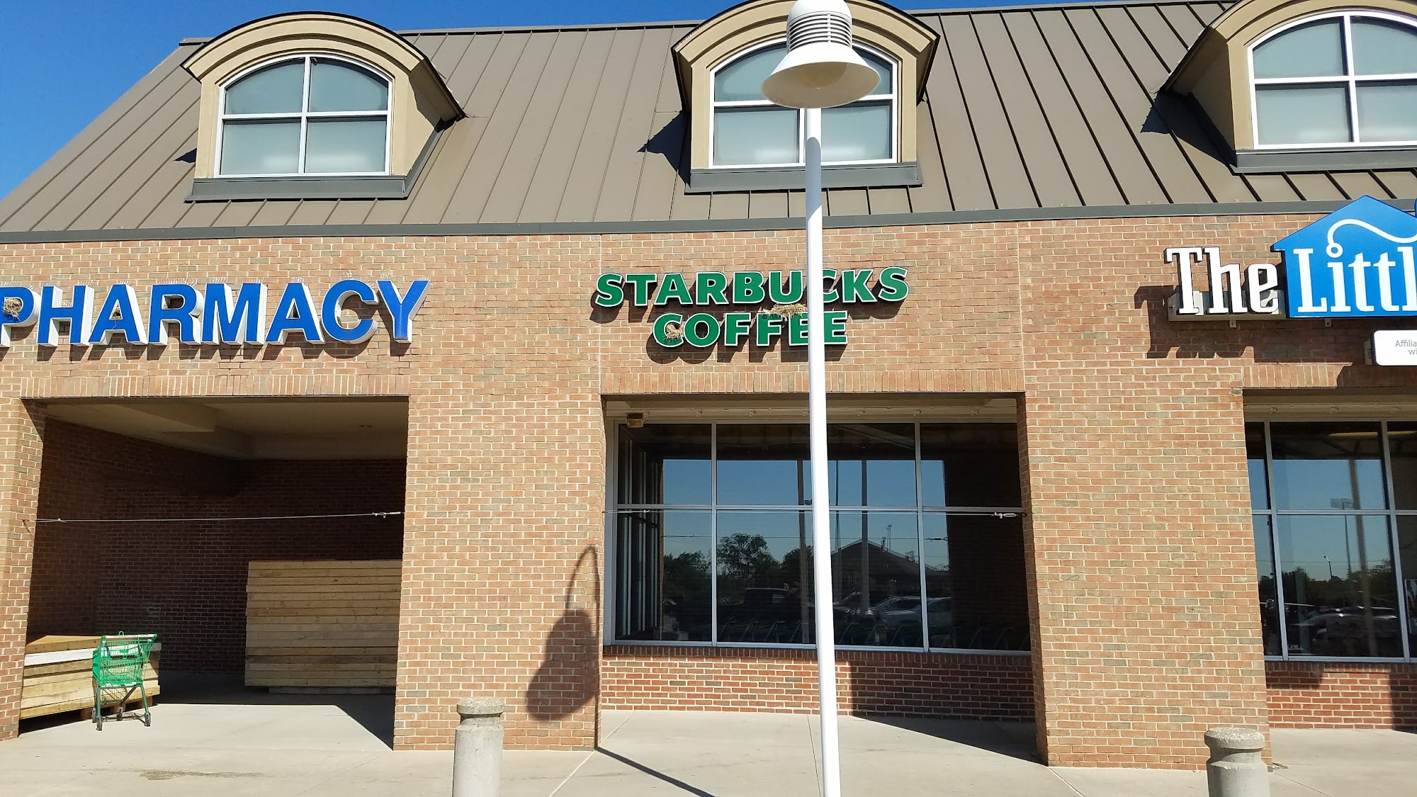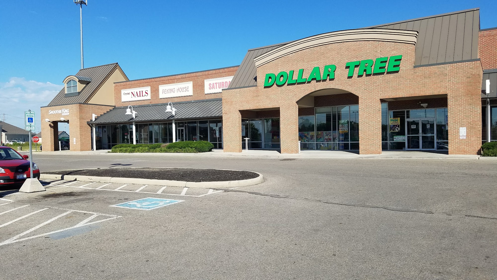 This is a shopping plaza and parking lot, with many shops and ample parking.