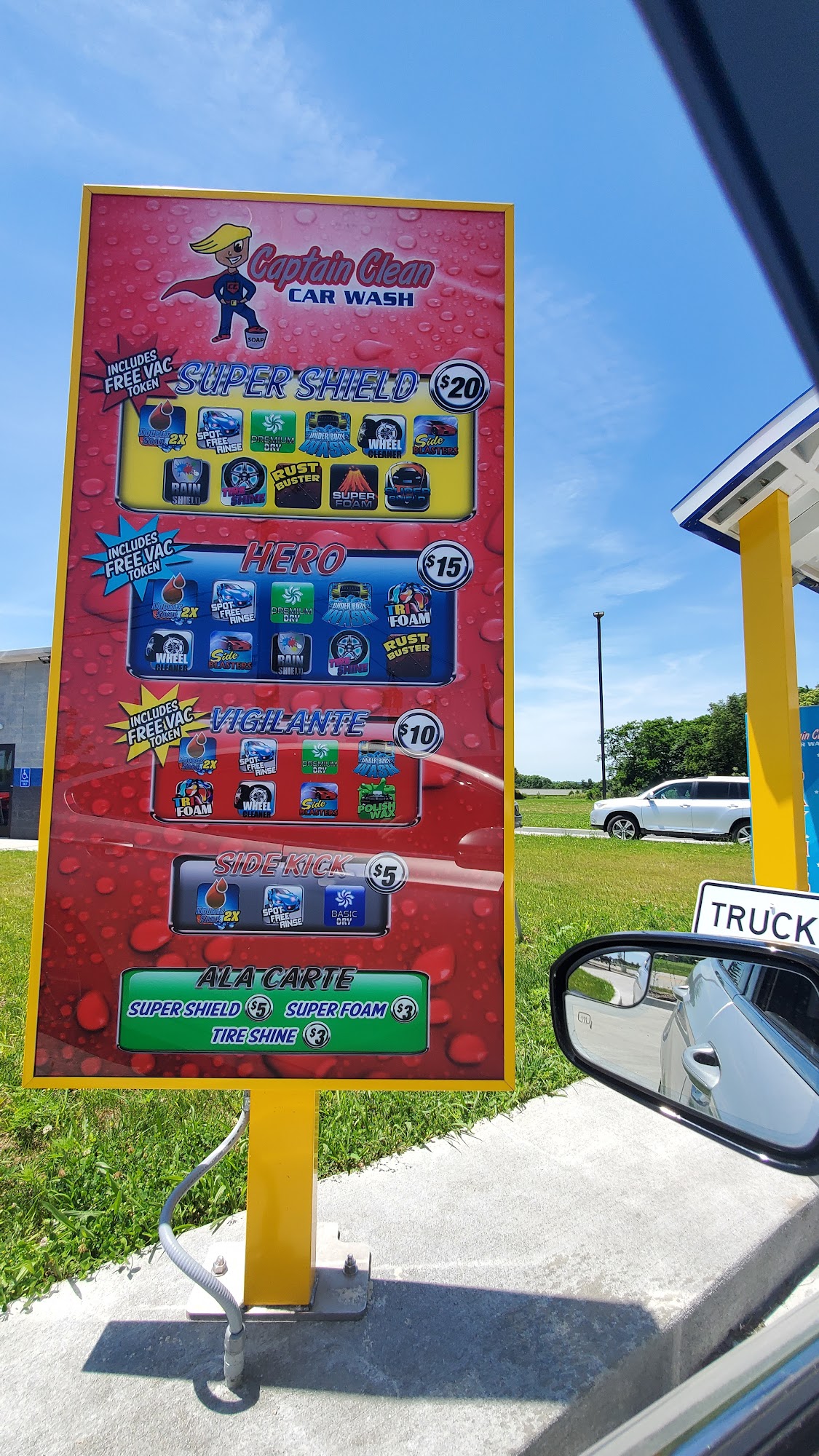 This is a fabulous carwash! A gentleman will greet you and spray your vehicle with a detergent and water, then you proceed through the carwash. The carwash & lot is very clean! I suggest this carwash!