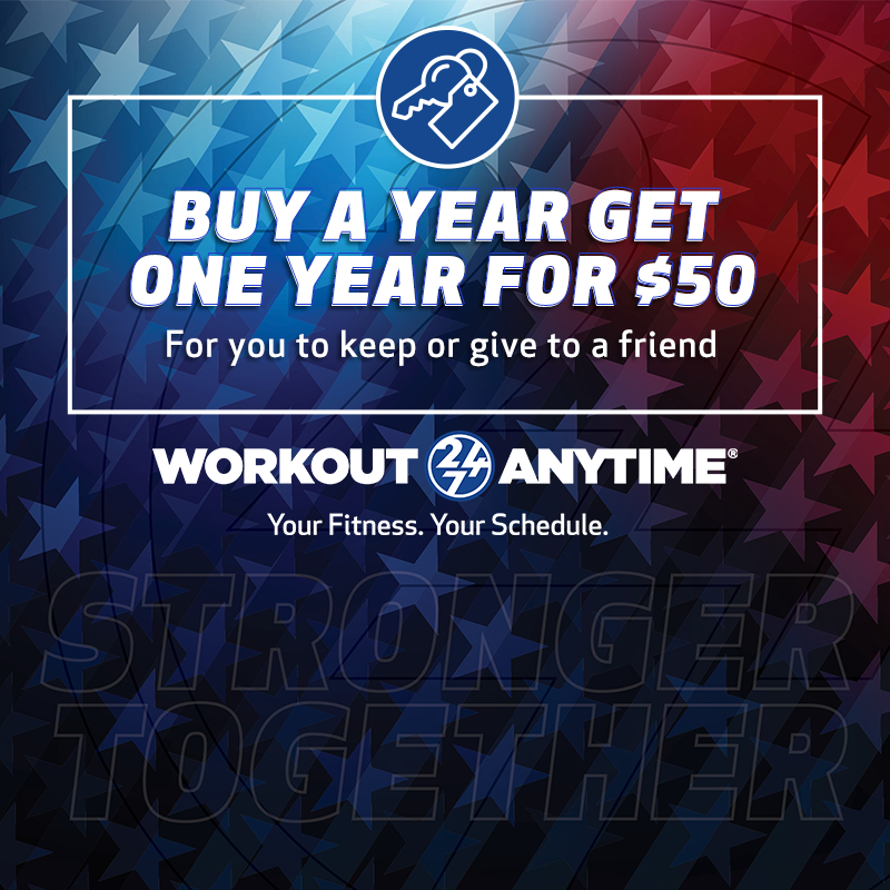 Like all Workout Anytime clubs across the country, we are locally owned and operated. We are fully committed to helping our members reach their fitness and wellness goals. At Workout Anytime our members experience real results in a positive and professional environment. We offer 24-hour member access, certified personal trainers, indoor tanning, HydroMassage, Matrix strength training, rows of cardio - including: treadmills, ellipticals, stair climbers, & stationary bikes; dedicated plate weight area, flat screen televisions, shower & locker facilities, free Wi-Fi access for members, use of all Workout Anytime locations across the country, guest privileges and monthly fitness evaluations.